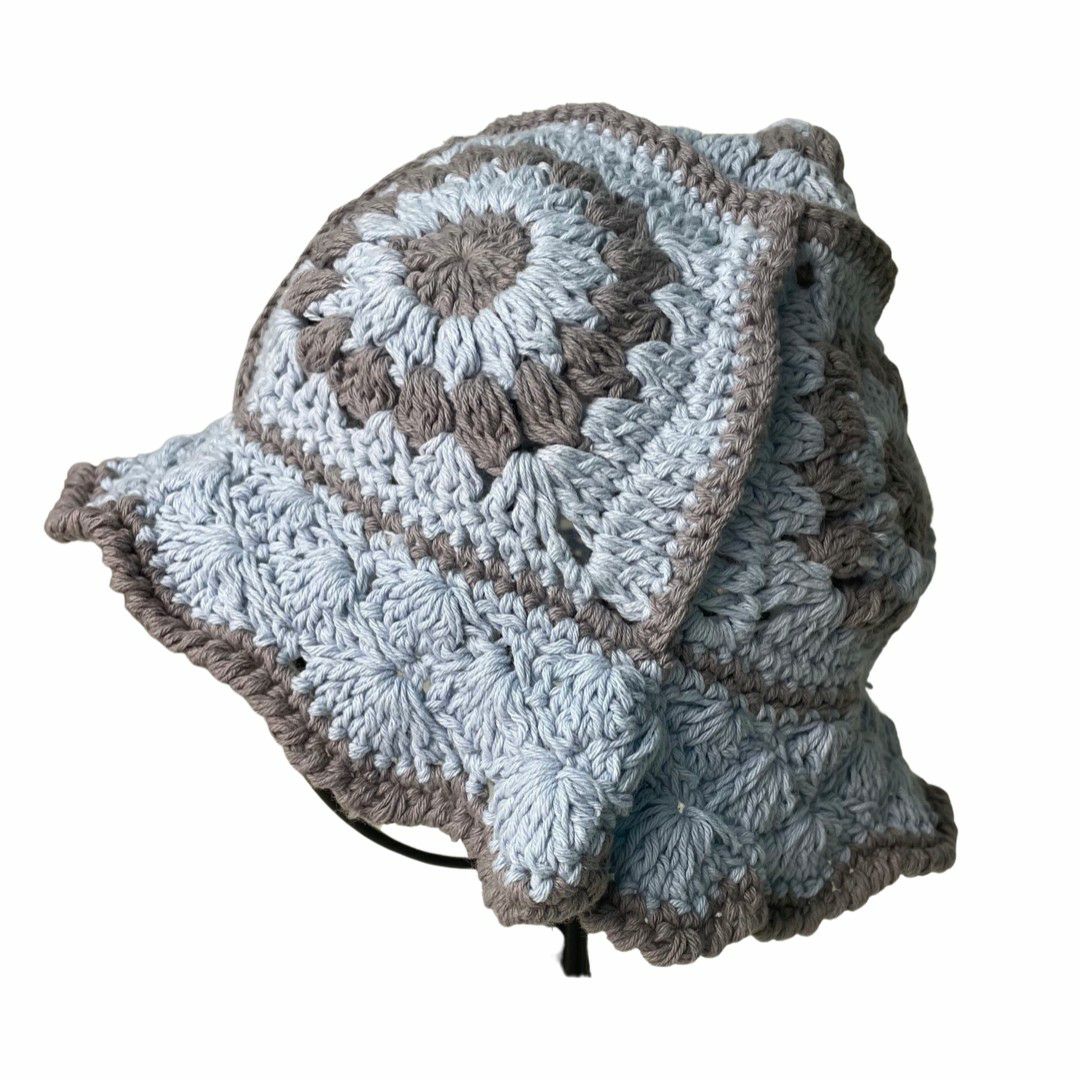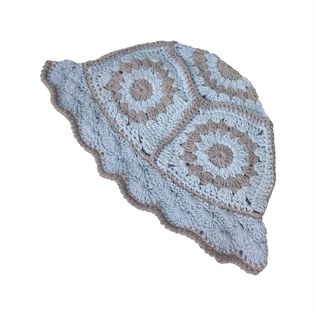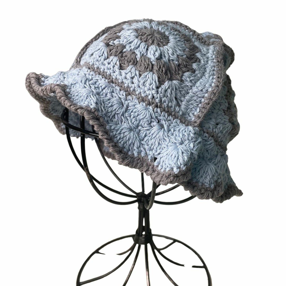 グラニースクエアハット ブルー×グレー