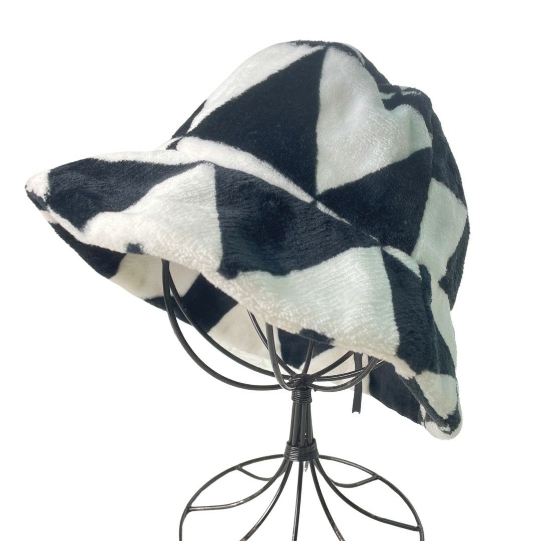 幾何学模様 ファーバケットハット ブラック×ホワイト