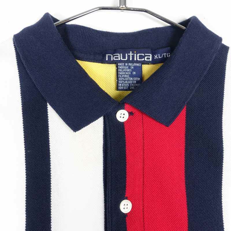 古着 NAUTICA マルチストライプ 半袖 ポロシャツ