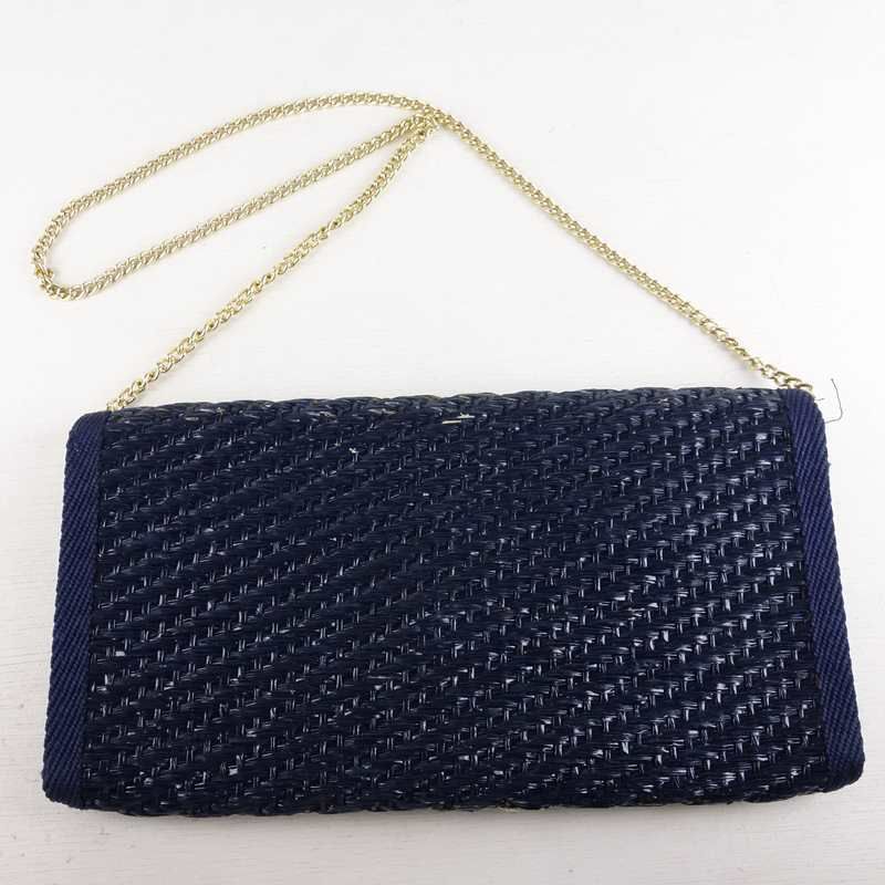 USED 麦わら ショルダーバッグ ネイビー