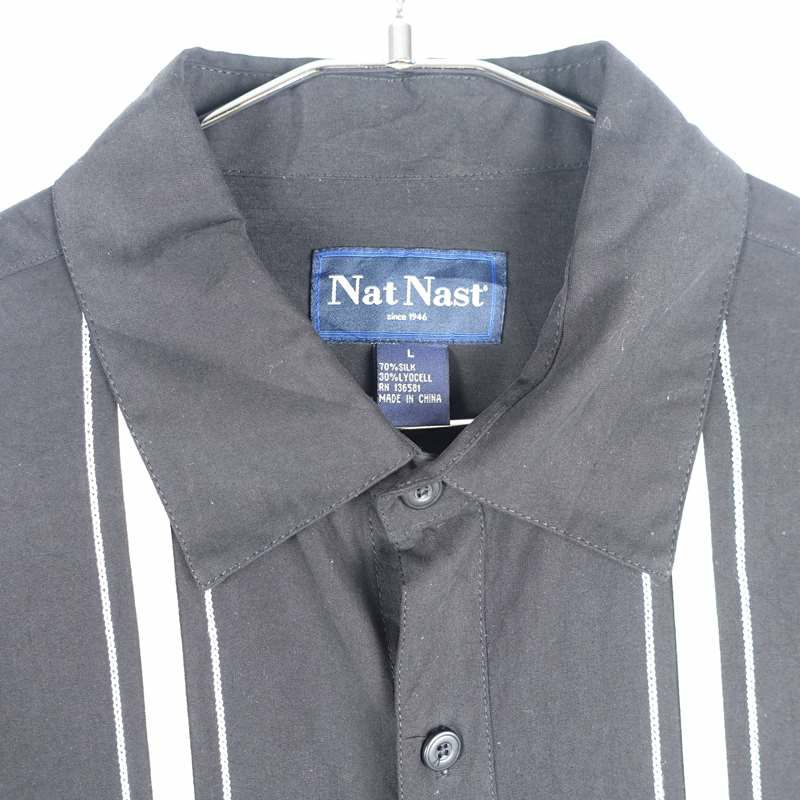 古着 開襟 モノトーン シルク 半袖シャツ