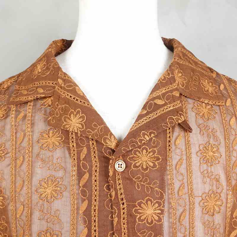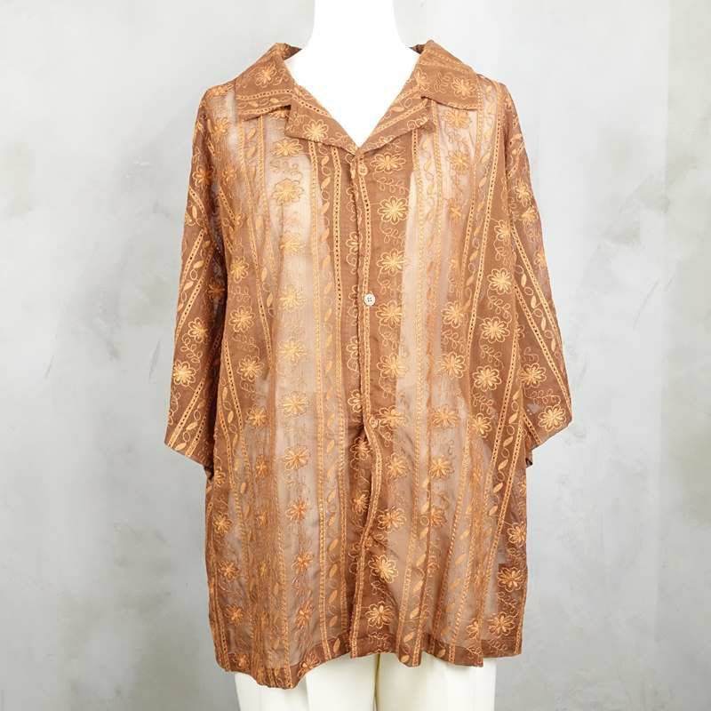 他の画像を見る Fafatt ファファット レース シースルー 半袖シャツ ブラウン 販売価格 ¥ 7,480 税込 在庫切れ シースルーの生地に刺繍が施されたレースのシャツです。70'sのポリエステルのパンツに合わせてビシッと70‘s風にコーディネートもよし、デニムパンツに合わせてでトレンドに寄せたコーディネートしてもよし、スラックスで大人っぽく上品にコーディネートしてもよしでボトムによって雰囲気を変えられるアイテムです。メンズがレースのアイテムを着用するのは最近のトレンドでなかなか難しいと感じる方もいらっしゃると思いますが、柄シャツと同じ要領で着用頂ければ合わせやすいです。 詳細を見る お気に入りに登録する