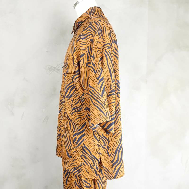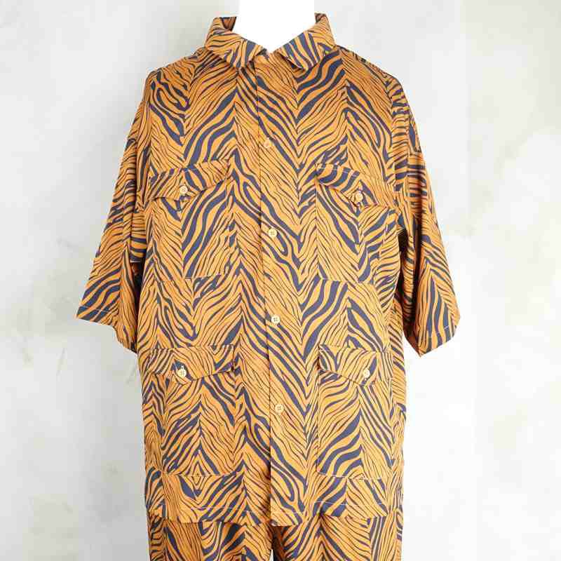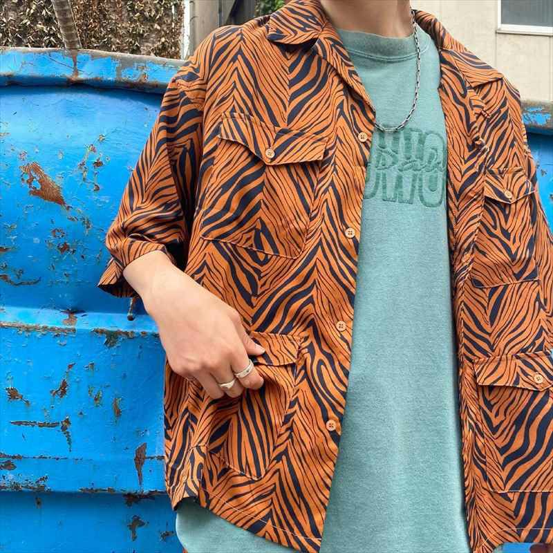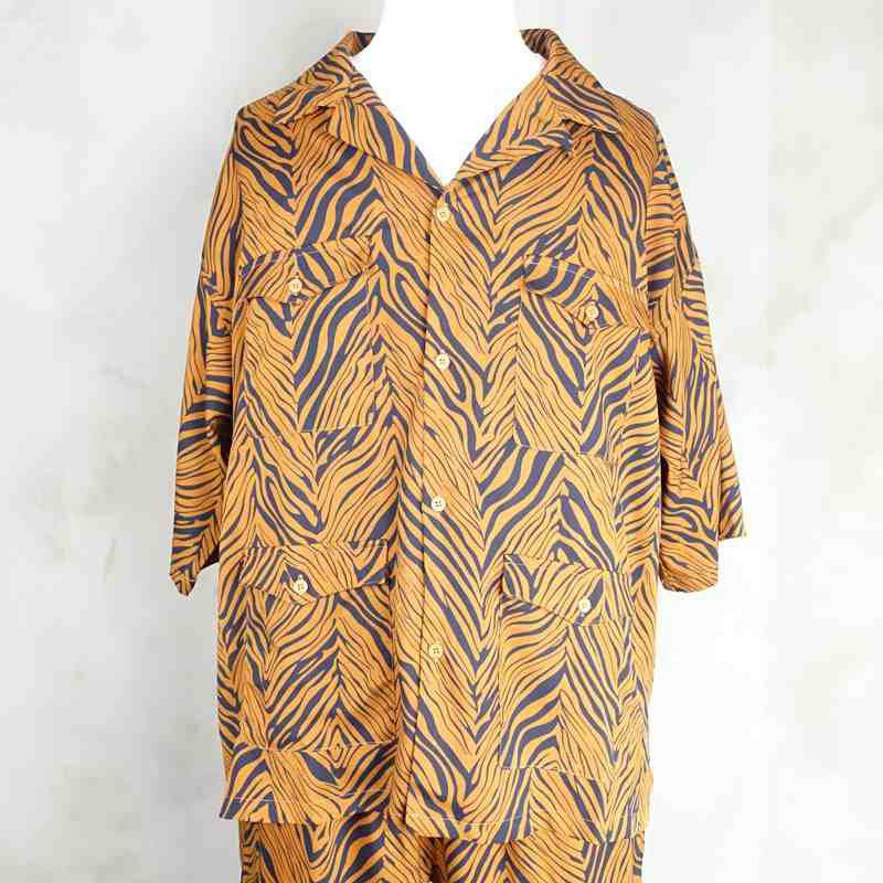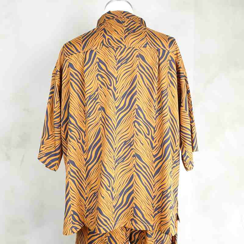 他の画像を見る Fafatt ファファット ゼブラ柄 開襟 半袖シャツ ブラウン 販売価格 ¥ 7,480 税込 サラッとした軽い手触りの生地を使用したブラウンベースのゼブラ柄が特徴の開襟シャツです。一見パンチの効いたアイテムに見えますが、ブラウンベースの柄とこだわったディティールによって合わせ方次第で大人っぽく着こなしていただけると思います。フロントにはウエスタン仕様のフラップが付いた4つポケットが目を引きます。また、袖口は肘が隠れる長さになっており、着用時のオーバーサイズ感がスタイルをよく見せます。同色同柄のパンツもあるためそちらとセットアップでご着用頂くのもおすすめの1品です。 カートに入れる お気に入りに登録する
