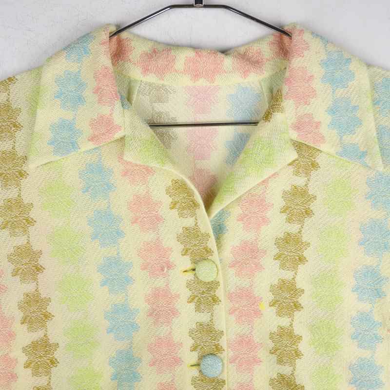 古着 開襟 幾何学柄 シルク 半袖シャツ