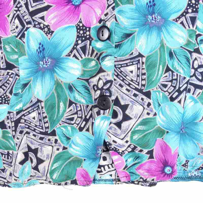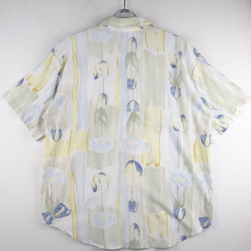 古着 花柄 開襟 レーヨン 半袖シャツ