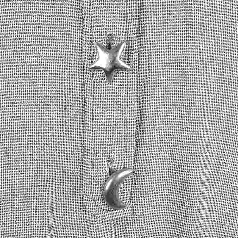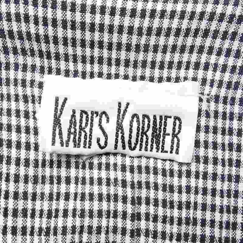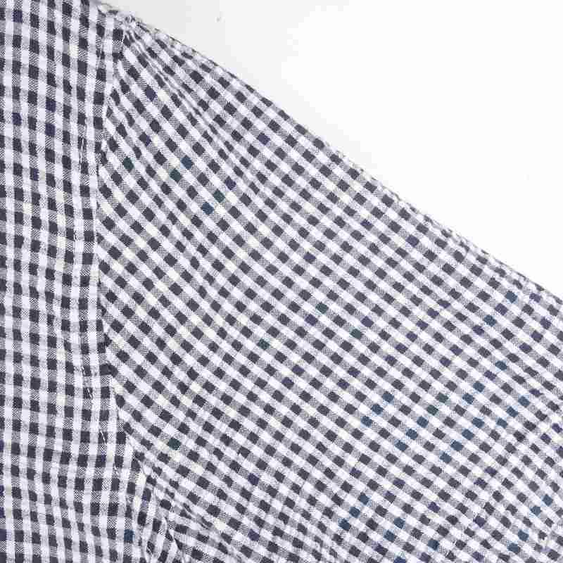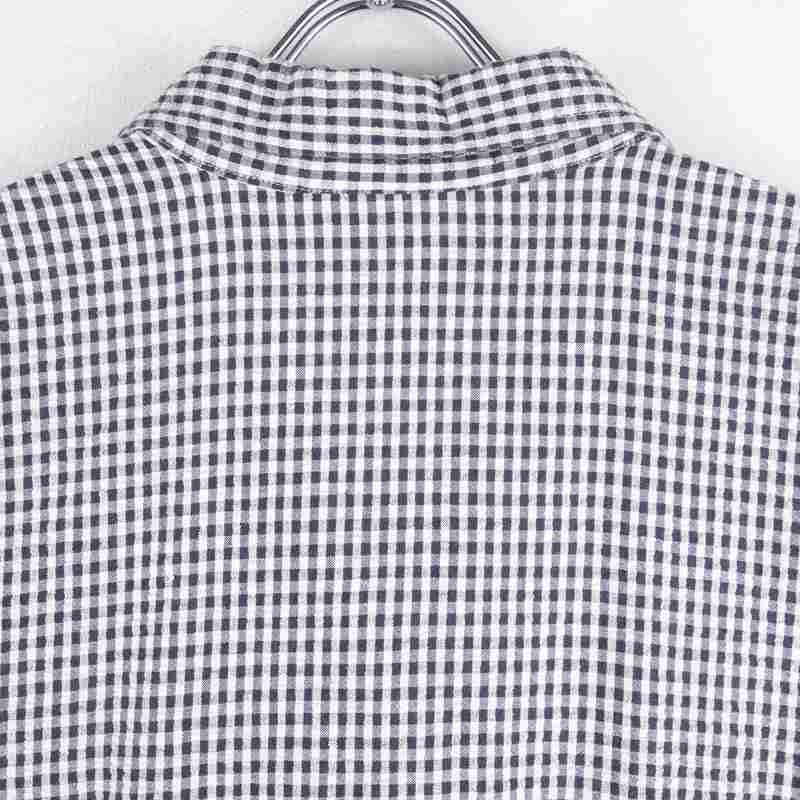 古着 ハート×チェック ノーカラー 半袖シャツ