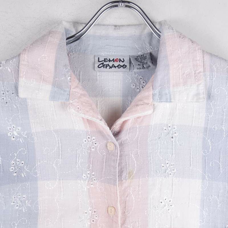 古着 開襟 花柄刺繍 半袖シャツ