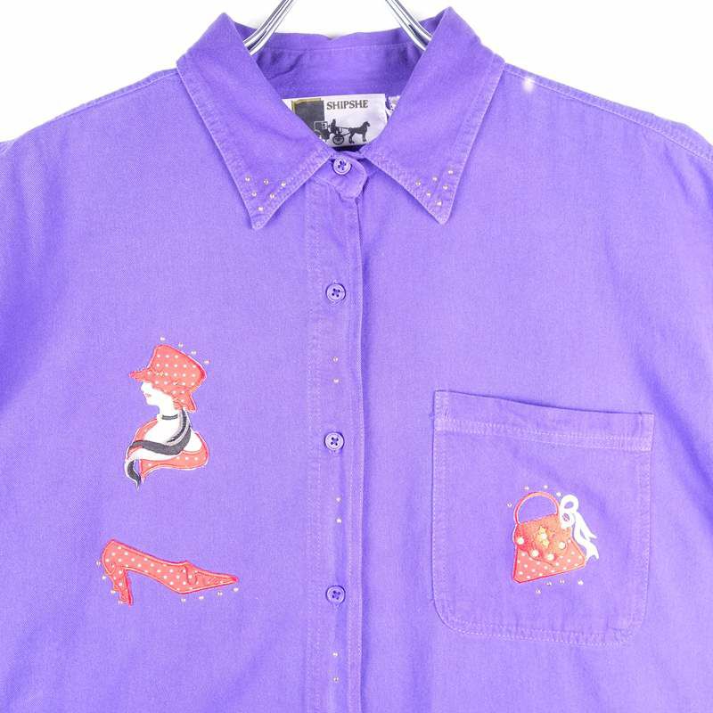 古着 開襟 刺繍 半袖シャツ