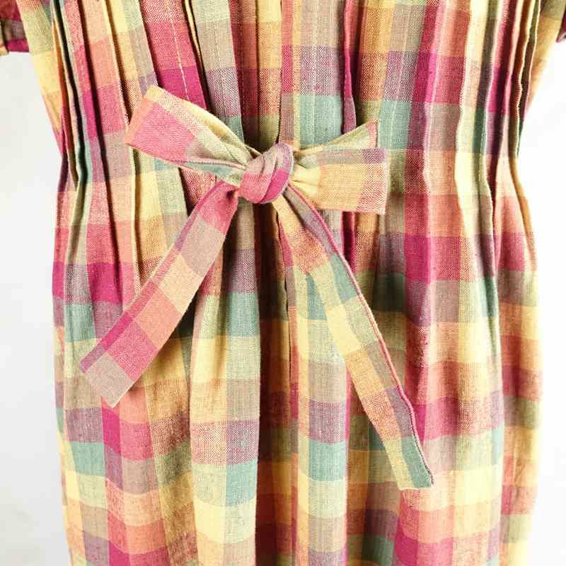 古着 チェック Iライン リネン ワンピース