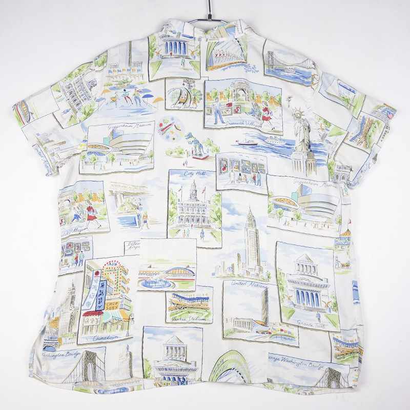 古着 モチーフ柄 シルク 半袖シャツ