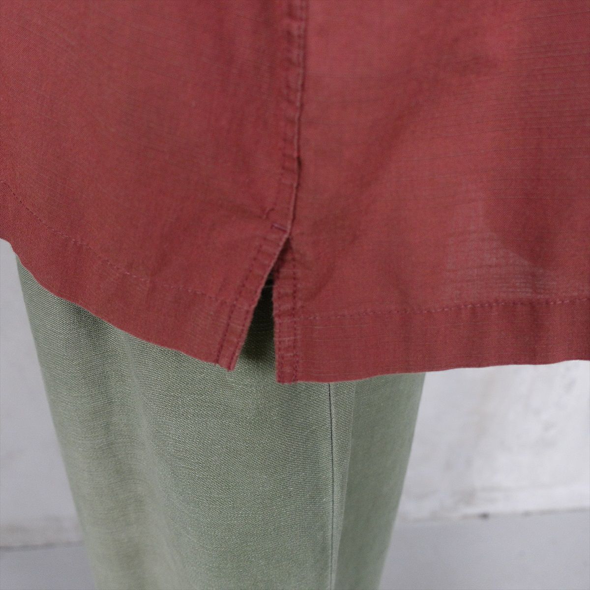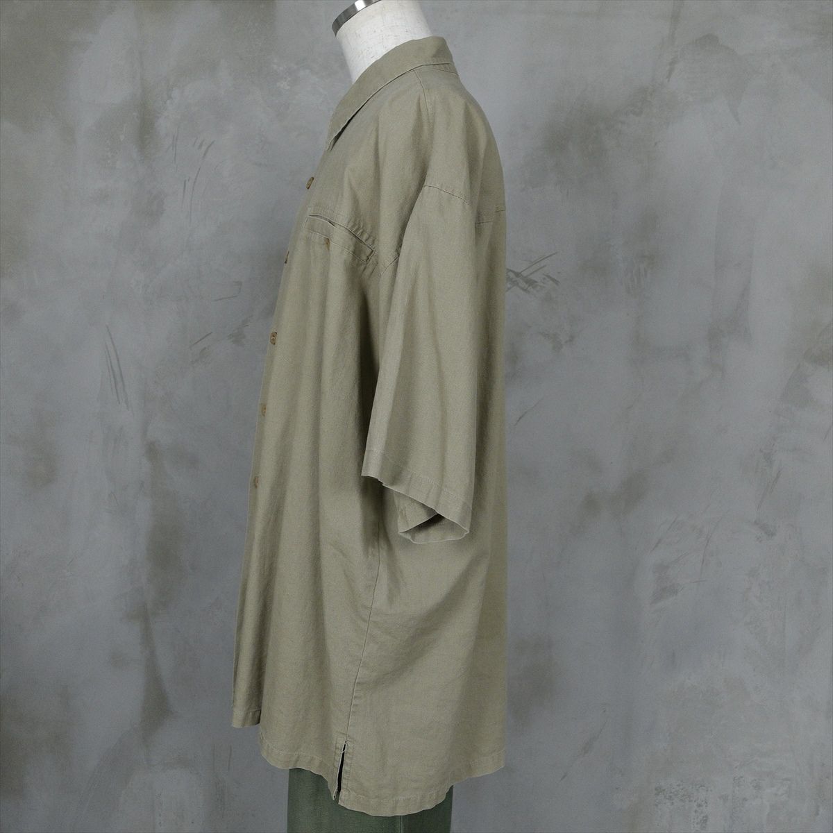 古着 無地 リネン 半袖シャツ