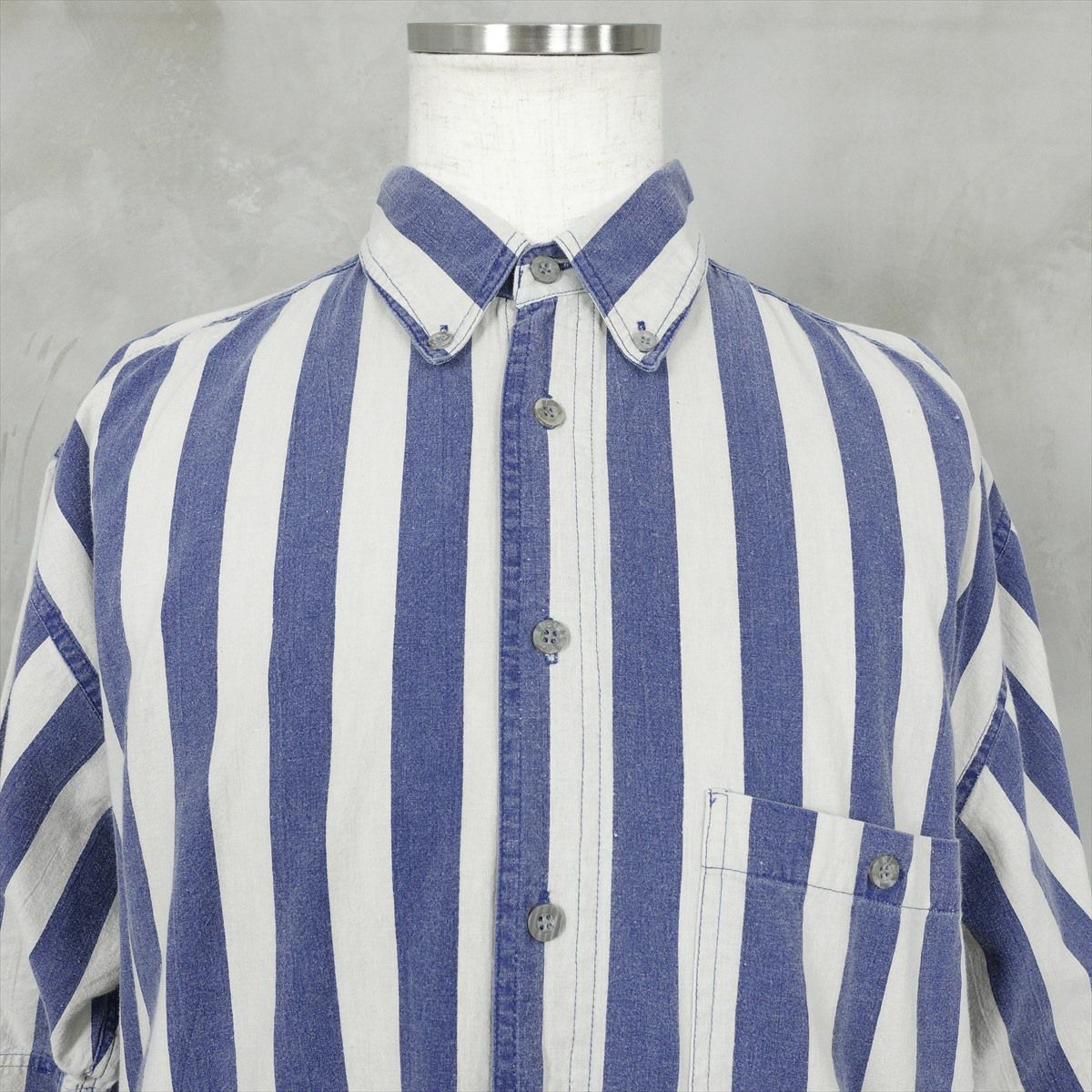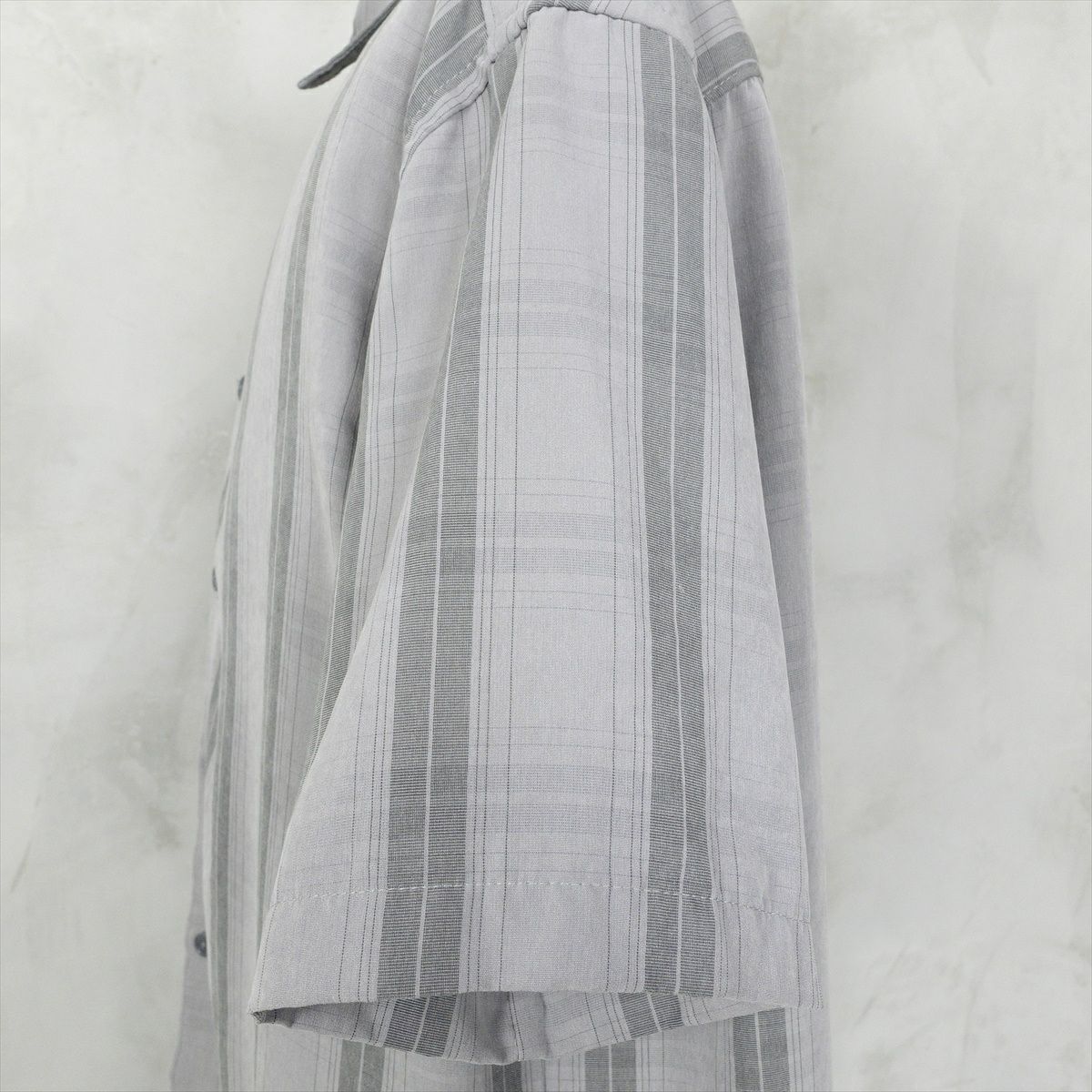 古着 ダブルストライプ ノーカラー 半袖しシャツ