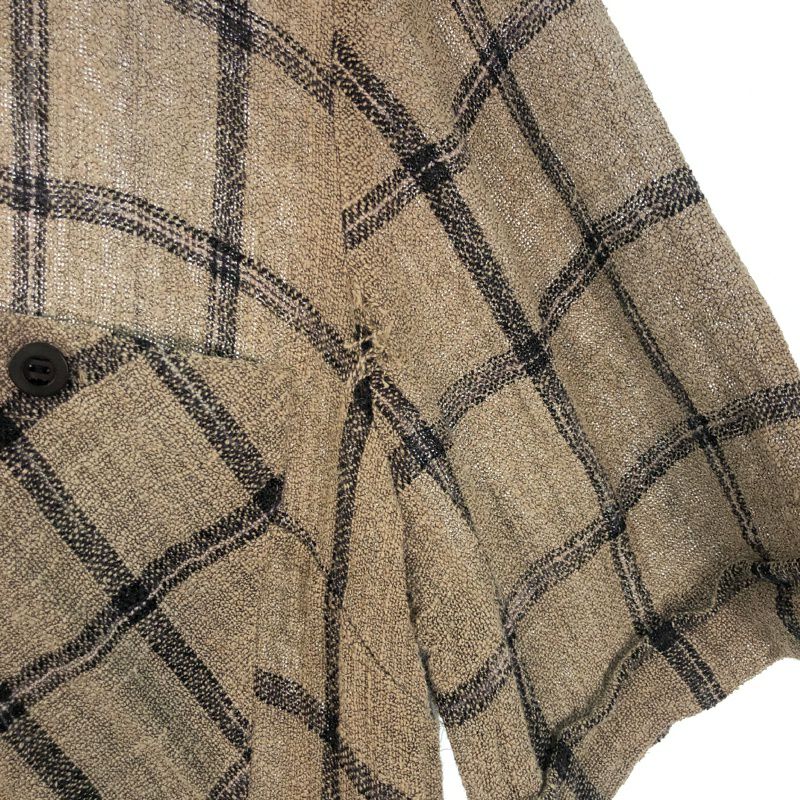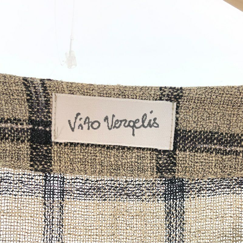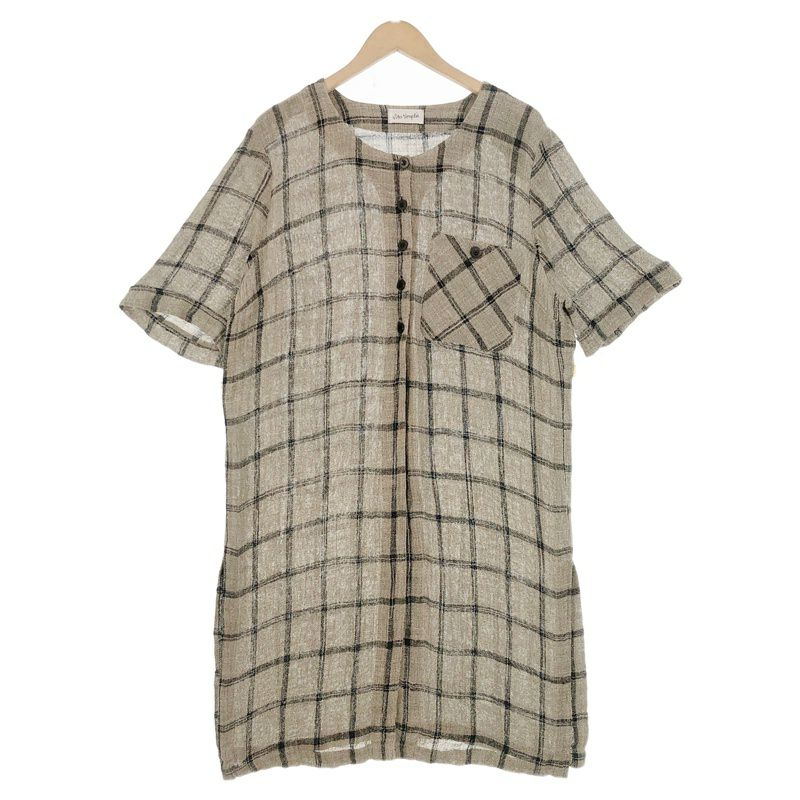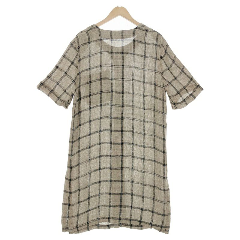 古着 チェック柄 リネン 半袖ワンピース