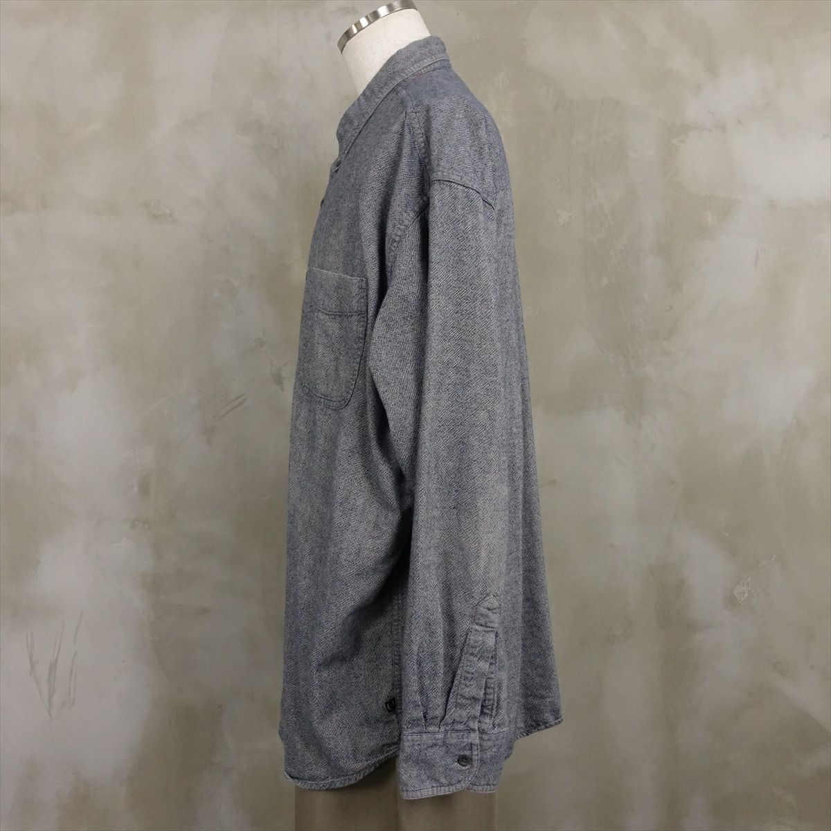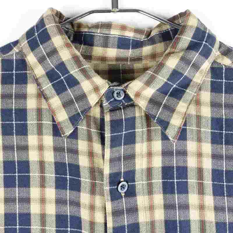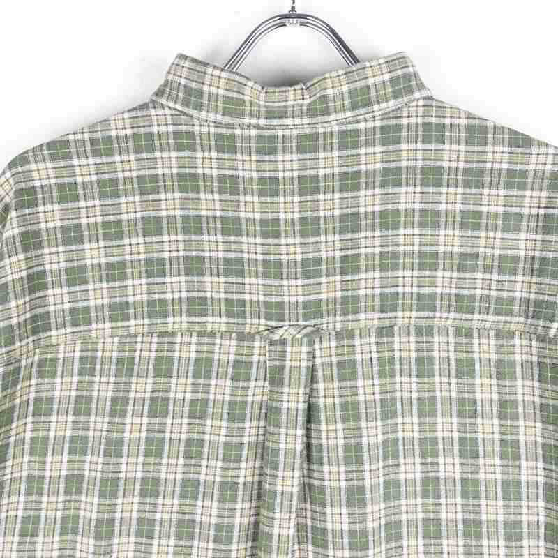 古着 CHAPS ノーカラー チェック 長袖シャツ