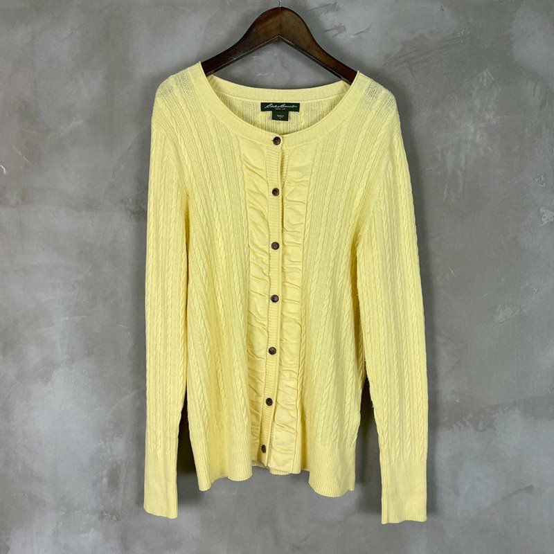 古着 Eddie Bauer パステルイエロー コットン カーディガン
