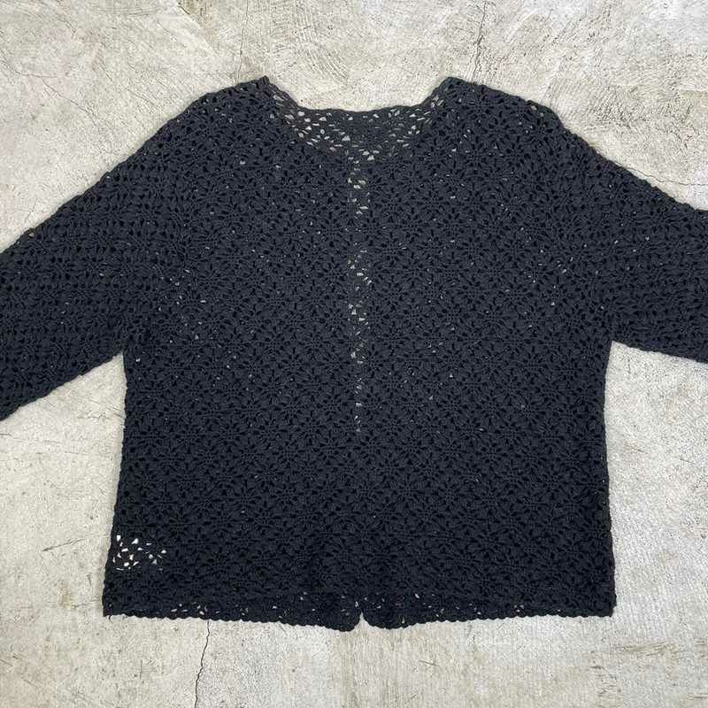 古着 Eddie Bauer リネン コットン 鍵あみ カーディガン