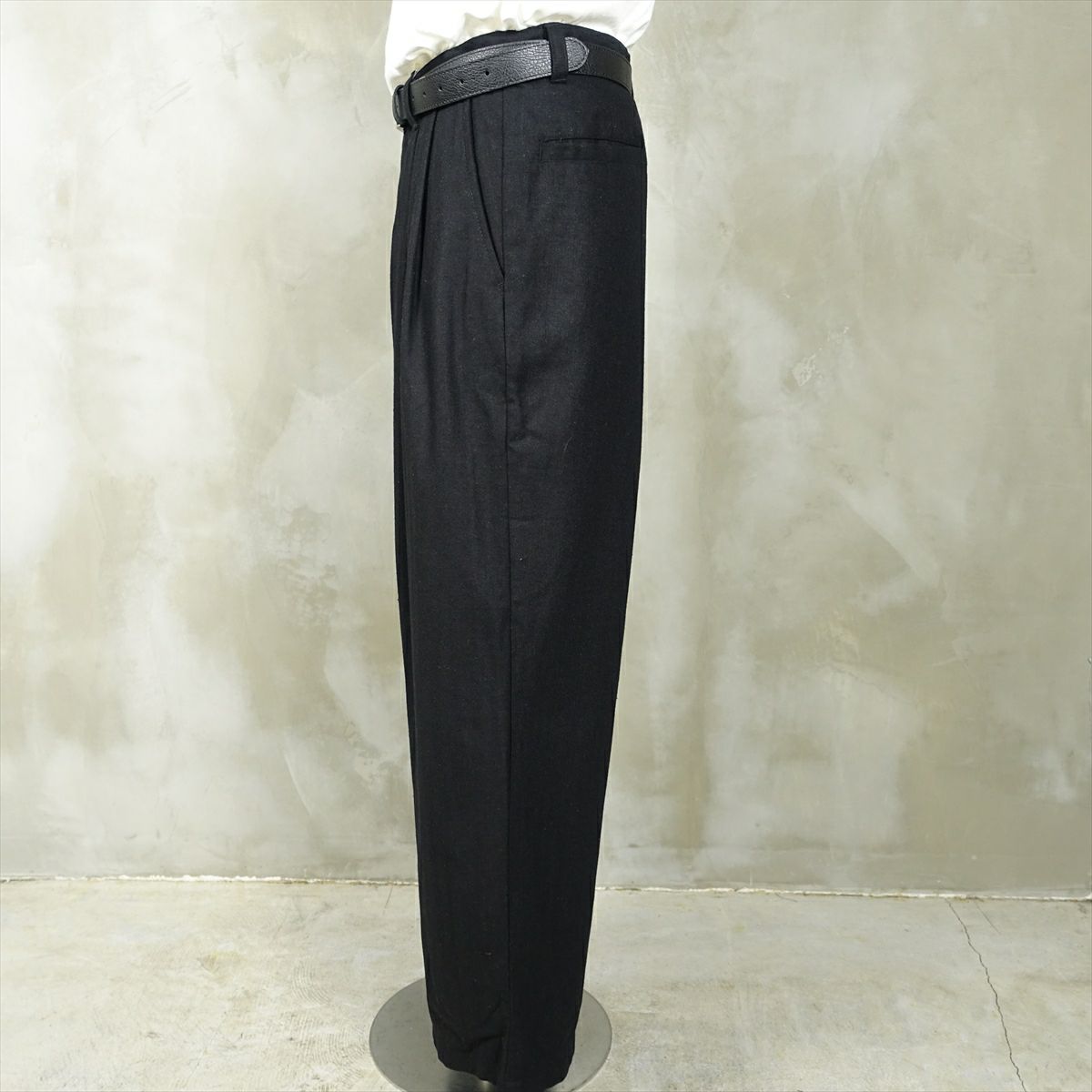他の画像を見る fafatt ファファット ウールスラックス 販売価格 ¥ 7,480 税込 ウールとポリエステル50%の秋冬向けスラックスです。しっかりとした裏地が付いているのでウール特有のチクチク感がなくサラッとご着用頂けます。フロントにタックとプレスが入っているのでシルエットも綺麗です。万能な黒なのでコーディネートに困ってもこれ1枚でまとまります。普段使いの1着としていかがでしょうか カートに入れる お気に入りに登録する