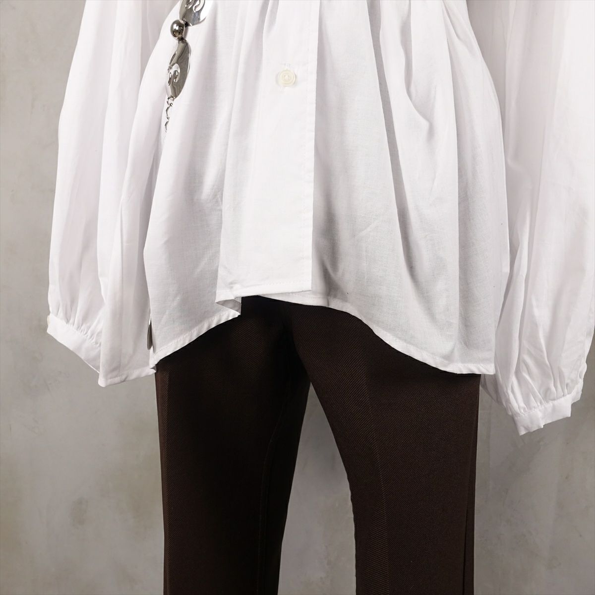 他の画像を見る fafatt ファファット ギャザー ブラウス 販売価格 ¥ 7,480 税込 ギャザーの入った全体的に広がったブラウスです。襟が小さく首元が詰まっていないのでインナーにタートルネックも着て頂けます。可愛らしい印象なのでパンツスタイルと相性がいいです。 カートに入れる お気に入りに登録する