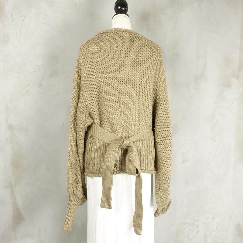 ボリュームのあるたっぷりとした袖が特徴的なカシュクールニットです。 胸元が大きく開いたデザインなので、インナー選びが楽しい一着です。