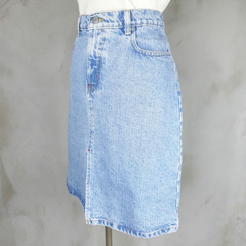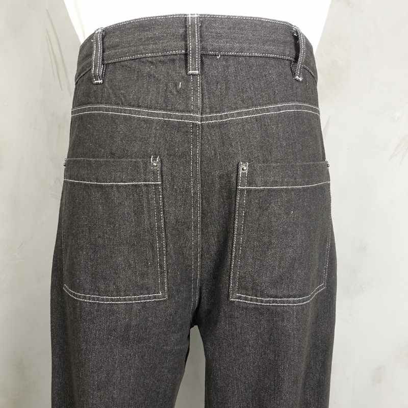 白いステッチが目を引くテーパードのかかったデニムパンツです。 リーバイスデニムパンツの501型をサンプリングしているため5ポケットなどのディティールもそのままとなっています。 ブラックカラーですが、デニム生地で柔らかい印象があるため、コーディネートに溶け込みやすく使い回しが効くため万能なアイテムです。