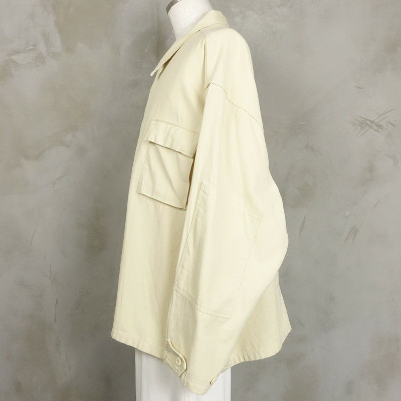 ハリ感のあるコットンを使用しており、エルボーパッチや、首元のチンスト、フロントに大きめのポケットが施されているディテールが、ハンティングジャケットなどの無骨な要素が垣間見えるアイテムです。 ボタンを閉じてビシッと着たり、開いてアウターとして着るのはもちろん、上のボタンを2つほど外して、テーラードジャケットの様に着ることも出来ます