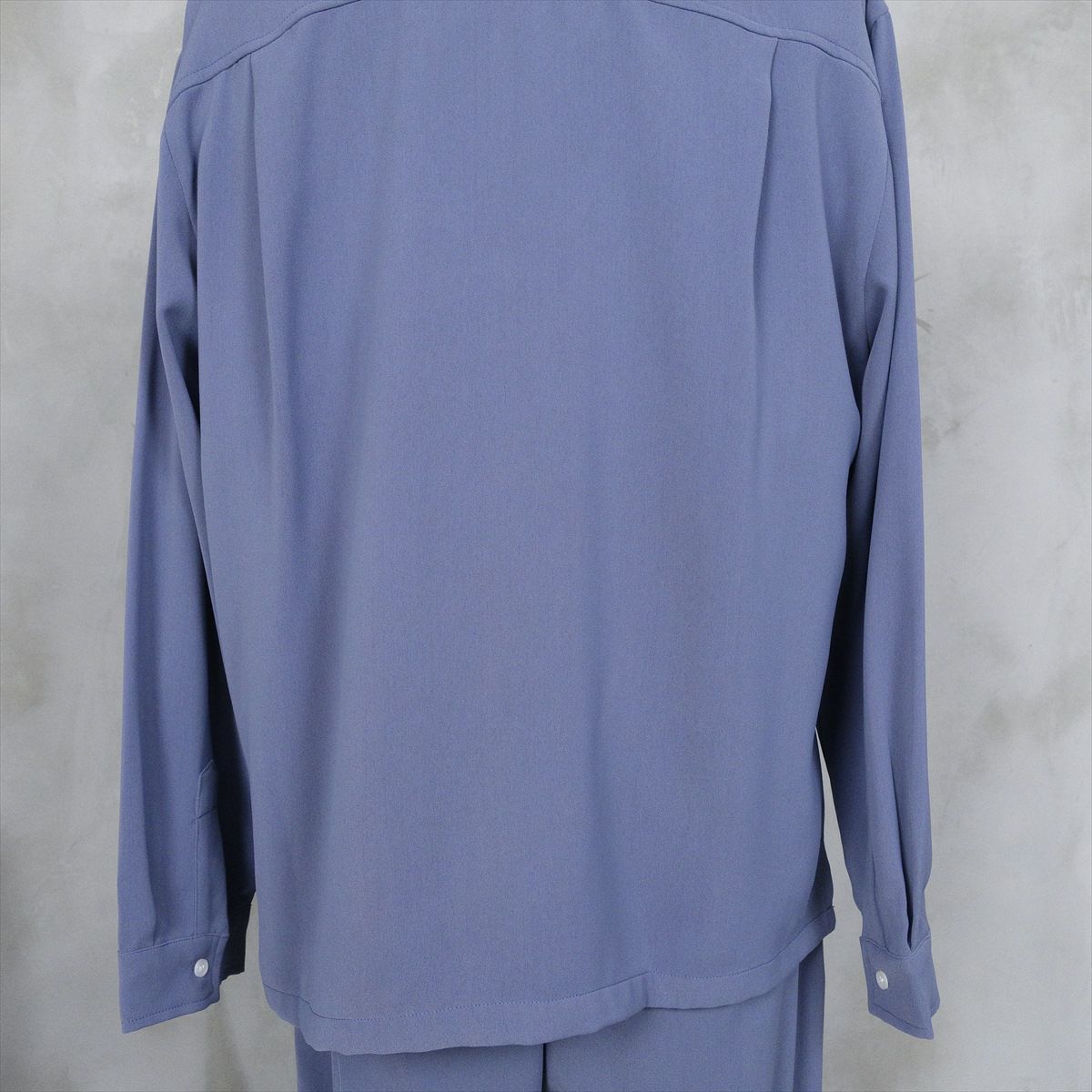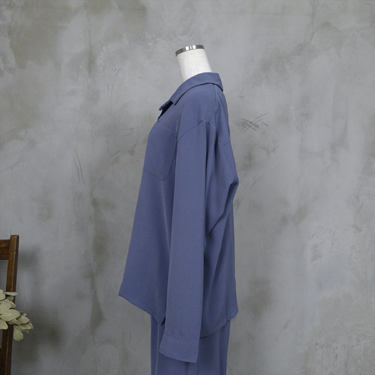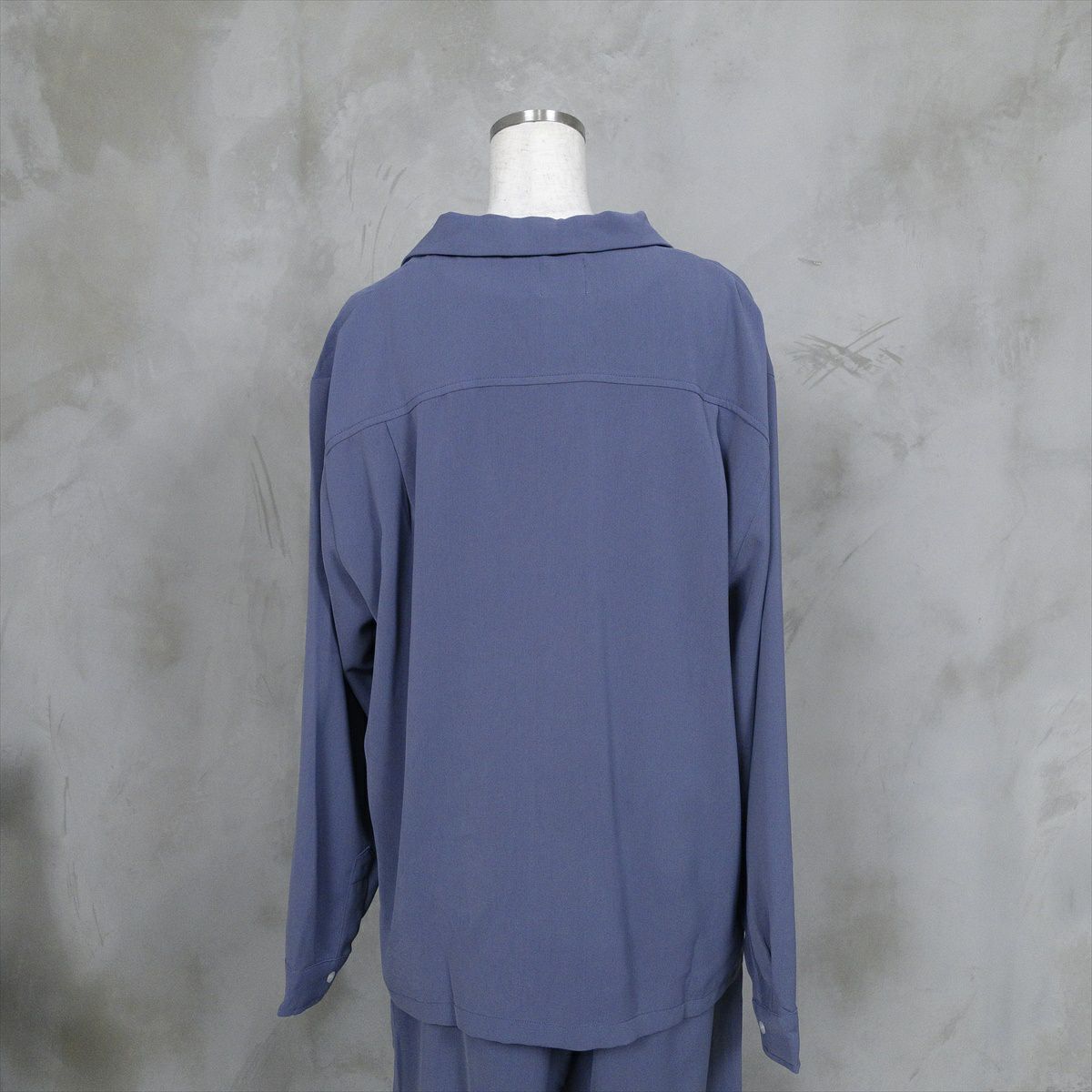 大きなサイズでもくすみブルーなら、重たくならずゆったり着用出来ます。