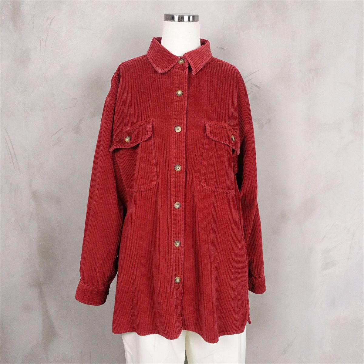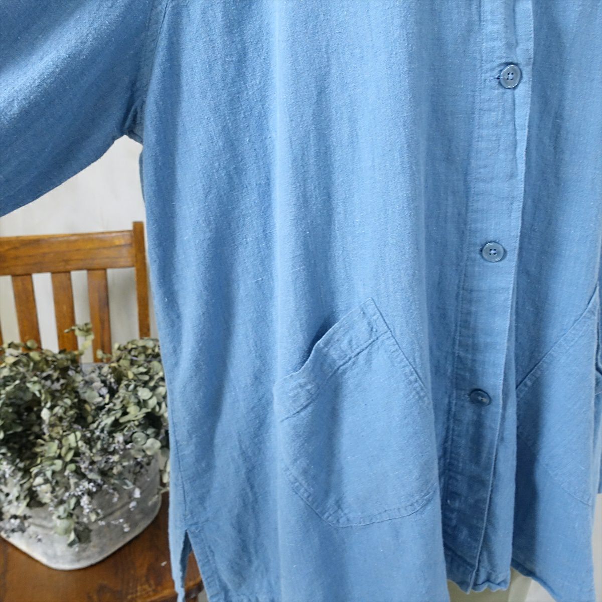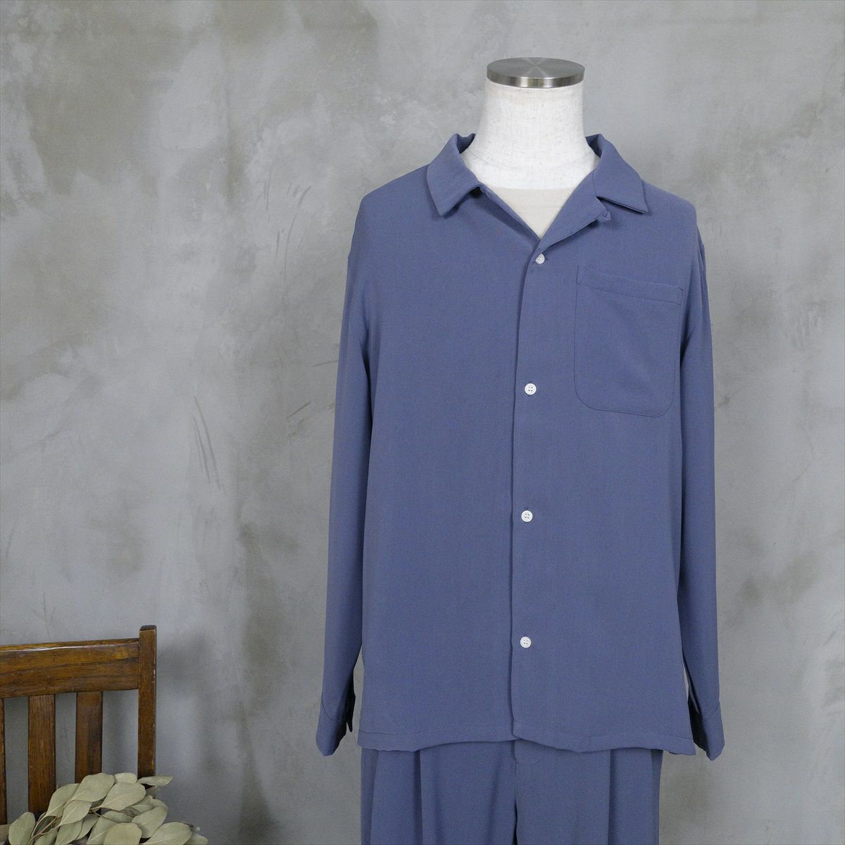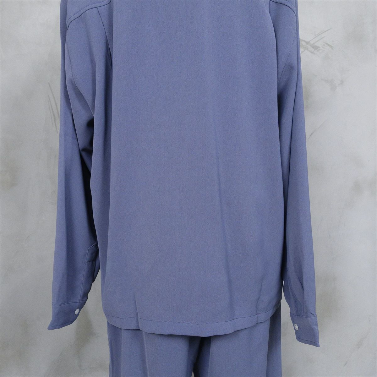 大きなサイズでもくすみブルーなら、重たくならずゆったり着用出来ます。