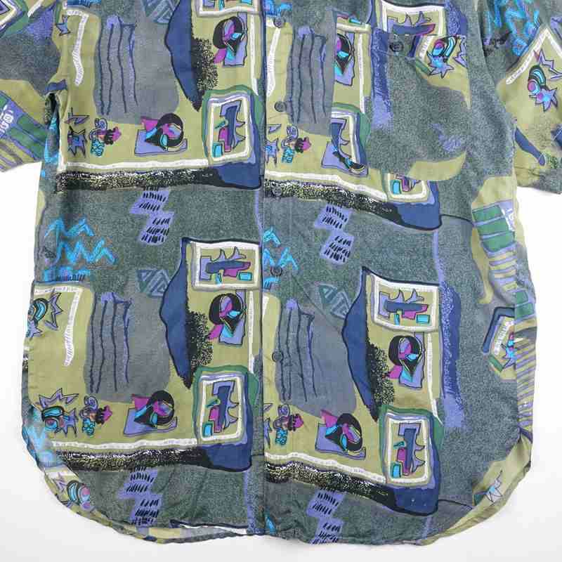 古着 アート風 シルク アロハシャツ