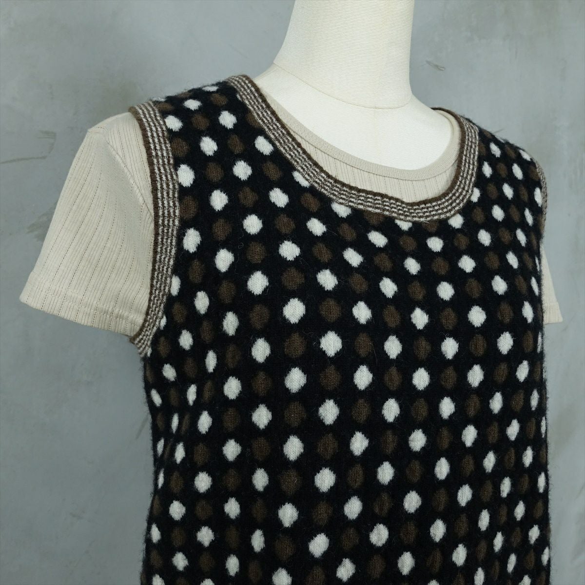 古着 コインドット柄 ニットベスト