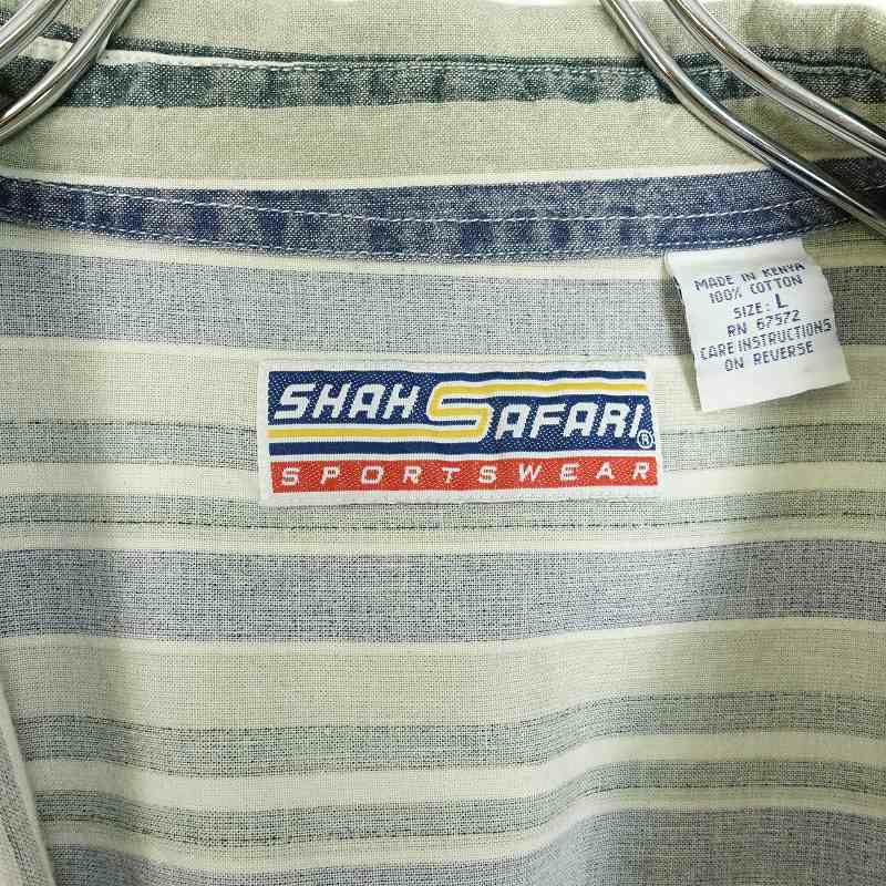 古着 SHAHSAFARI アースカラー ストライプ 半袖シャツ