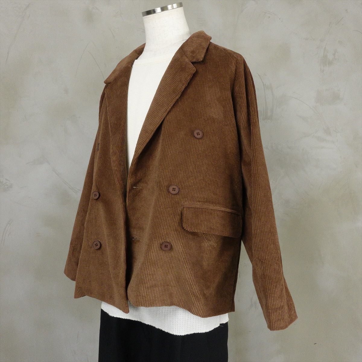 他の画像を見る Fafatt ファファット コーデュロイ テーラードジャケット 販売価格 ¥ 8,580 税込 コーデュロイ生地で作られたダブルボタンのテーラードジャケットです。フラップ付きのポケットがあり、ベーシックでトラディショナルなアイテムになっております。落ち着いたブラウンベースの色味で、日々のコーディネートに溶け込みやすく、着回しのしやすいアイテムです。メンズは勿論、レディースの方にもオーバーサイズで着て頂けます。 カートに入れる お気に入りに登録する