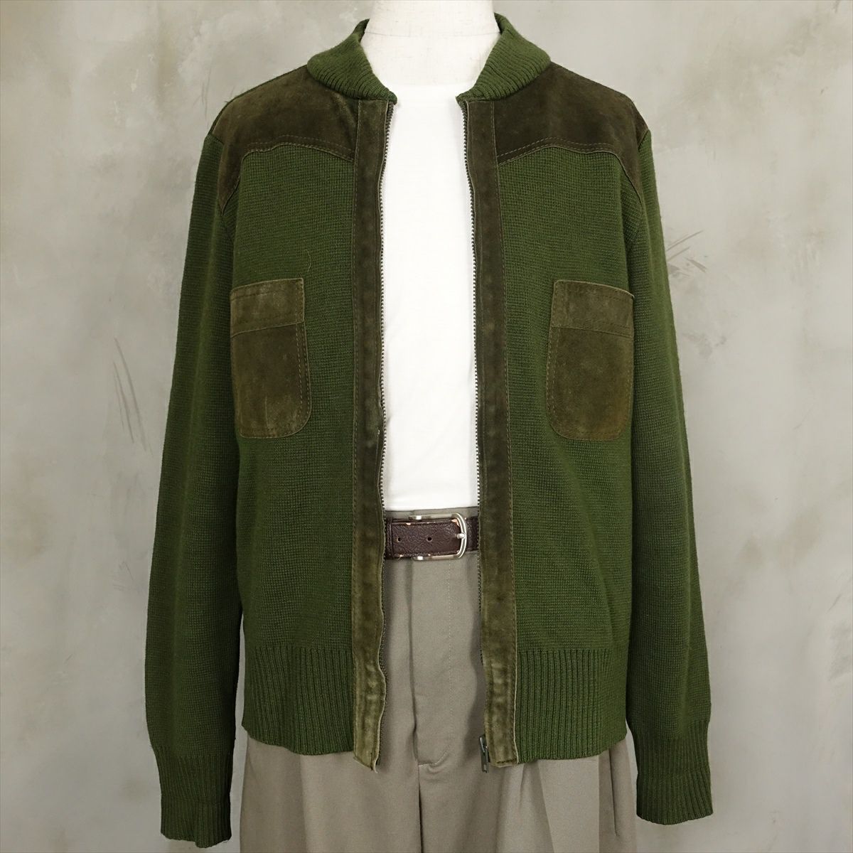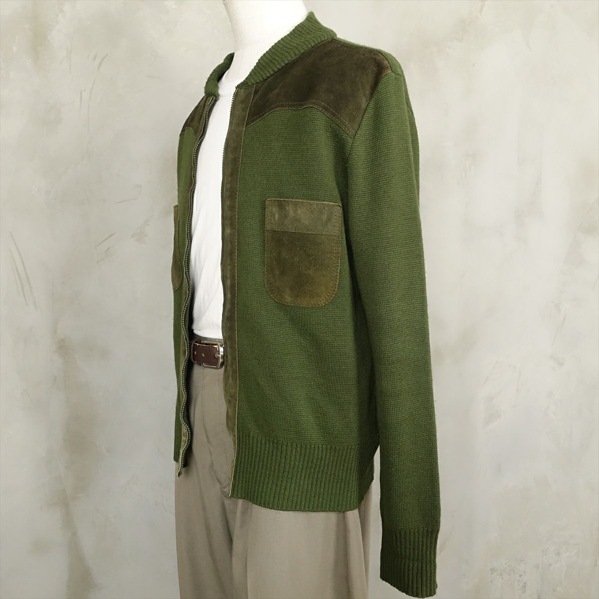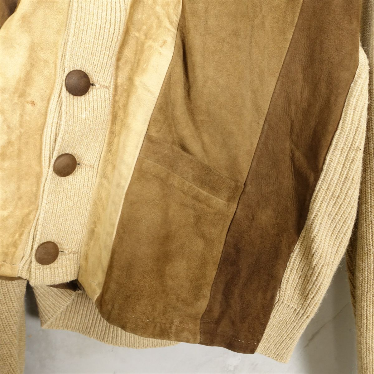 古着 wagner ウール&スエード ニットカーディガン
