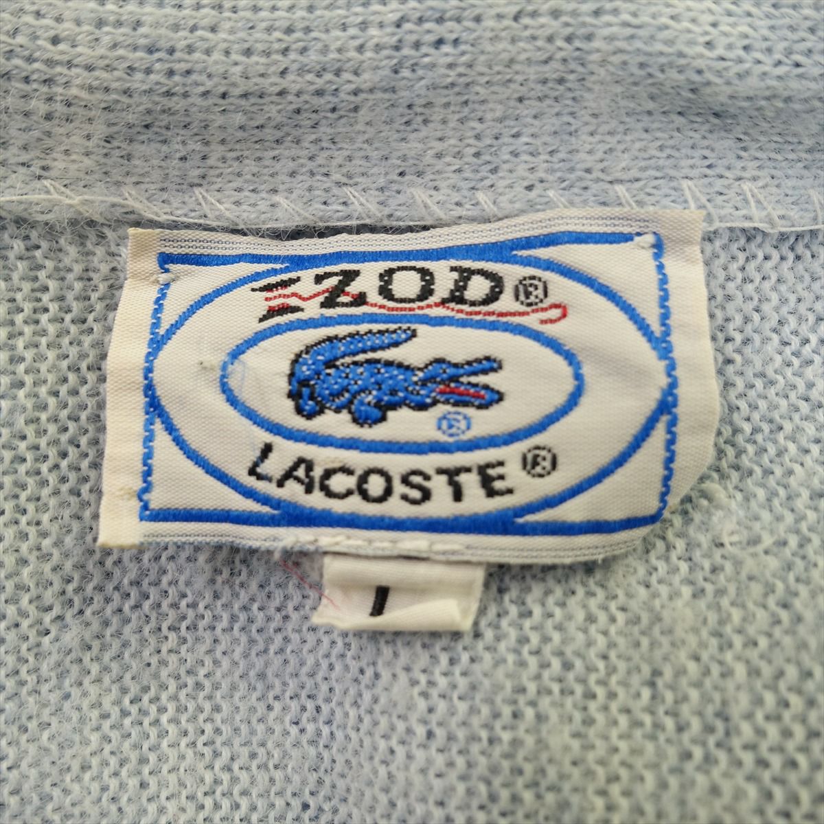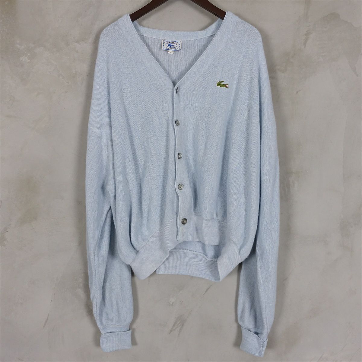 古着 LACOSTE くすみブルー スクールカーディガン