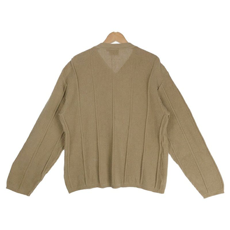 人気のブラックレザーを使用したカーディガンです。ニットカーディガンは良く見ますが、レザーで作られているのが非常に特徴的です。ジャケットやコートなどの下に合わせて頂くのはもちろん、スウェットやシャツなどに合わせて頂くのもおすすめです。また、バンドTシャツやキャラクターTシャツなどに合わせて、パキッとしたかっこいいスタイリングが出来ます。デニムや太めのカーゴパンツに合わせて頂くのもいいですね。