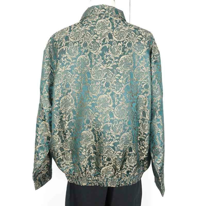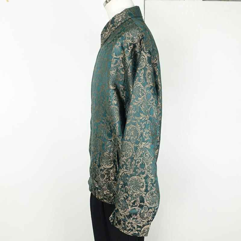 他の画像を見る 柄スウィングトップ 販売価格 ¥ 9,680 税込 在庫切れ 光沢のあるグリーンのボディーとゴールドの刺繍が特徴的な柄ジャケットです。形はシンプルですが、肩が落ちるシルエットなのでゆったりとオーバーサイズに着て頂けます。裏地が付いている為着やすくなっております。スウェットや無地のシャツ、Tシャツなどに合わせて着て頂くのがおすすめです。個性的なコーディネートに取り入れたい一品。 詳細を見る お気に入りに登録する