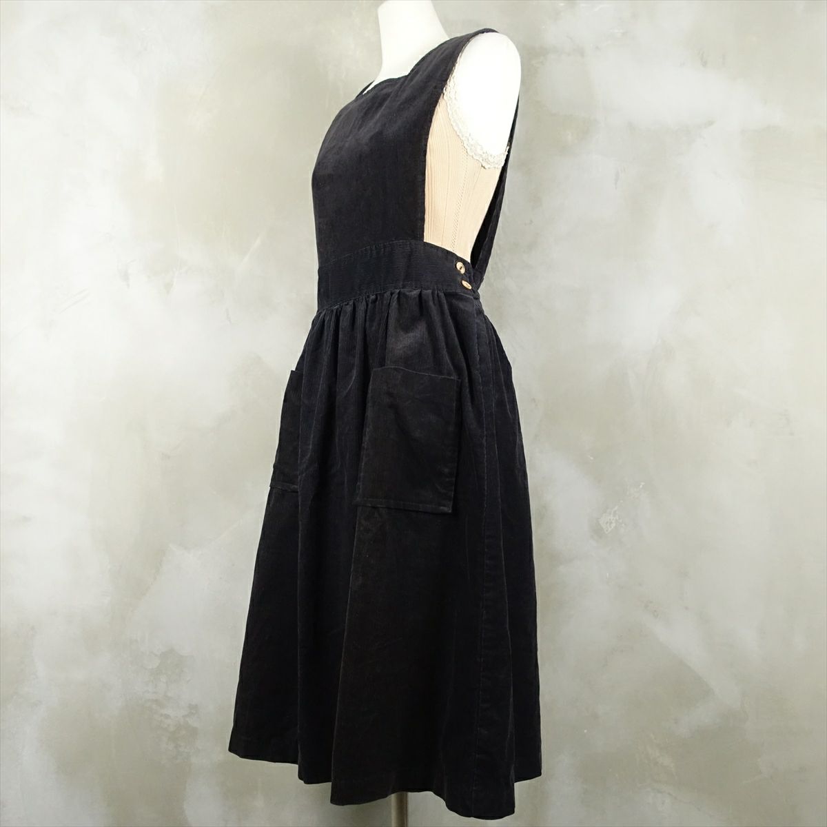 古着 oops エプロン風 コーデュロイ ノースリーブ ワンピース