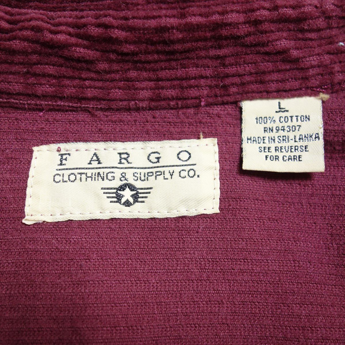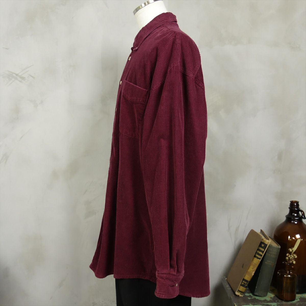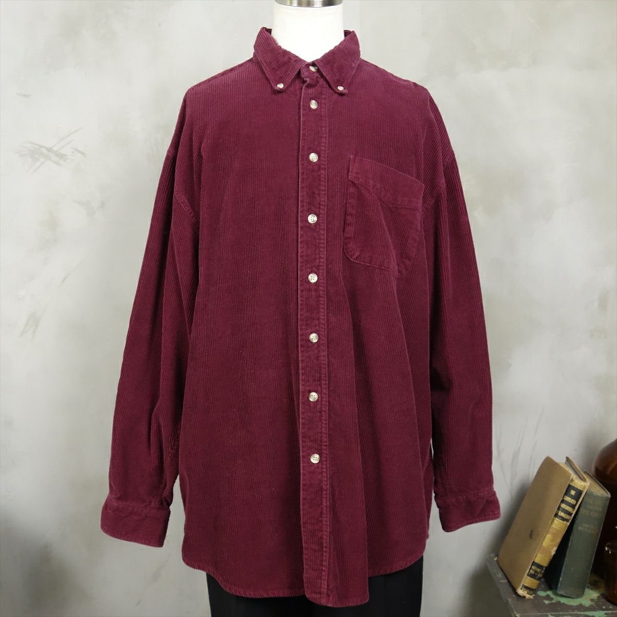 古着 長袖 コーデュロイシャツ ボルドー
