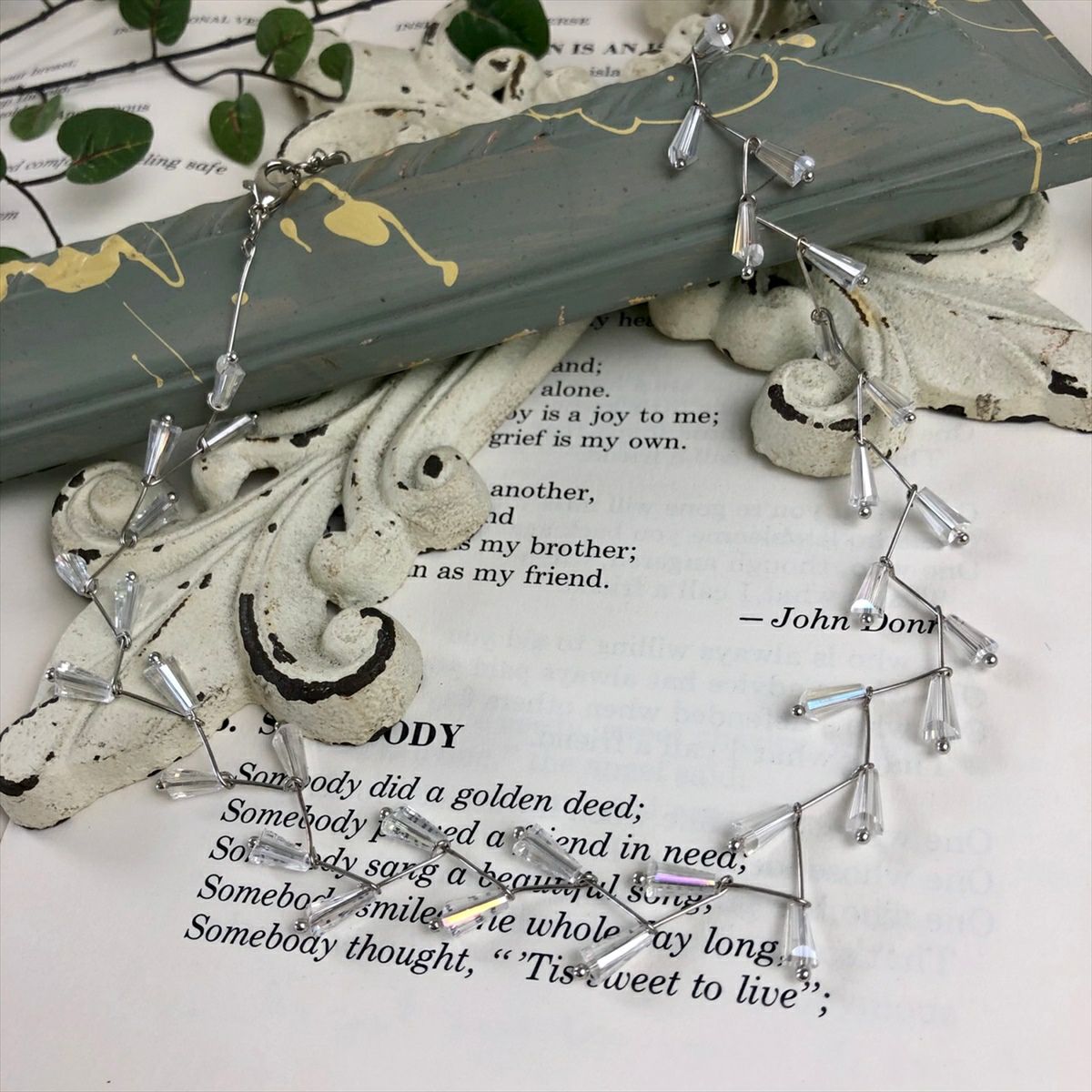 台形ビーズ チョーカー クリア×シルバー