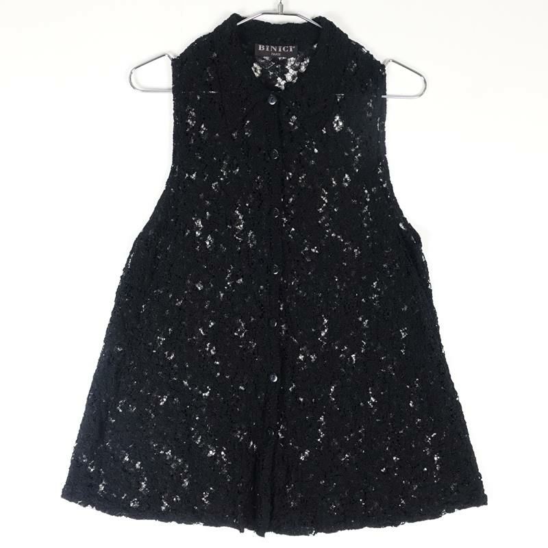 古着 総柄 シースルー ノースリーブ シャツ