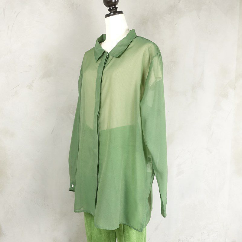 他の画像を見る fafatt ファファット シースルーシャツ グリーン 販売価格 ¥ 5,280 税込 シースルー素材のカラーシャツです。 襟周りが少し広くなっているのが特徴で、スッキリとした印象です。 透け感はありますが、透けすぎず使いやすいです。また落ち着いたトーンのカラーなので今っぽさは残しつつ大人な雰囲気があります。どんなボトムとも相性がいいです。 カートに入れる お気に入りに登録する