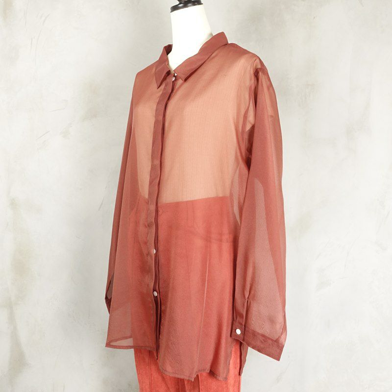 他の画像を見る fafatt ファファット シースルーシャツ ボルドー 販売価格 ¥ 5,280 税込 シースルー素材のカラーシャツです。 襟周りが少し広くなっているのが特徴で、スッキリとした印象です。 透け感はありますが、透けすぎず使いやすいです。また落ち着いたトーンのカラーなので今っぽさは残しつつ大人な雰囲気があります。どんなボトムとも相性がいいです。 カートに入れる お気に入りに登録する