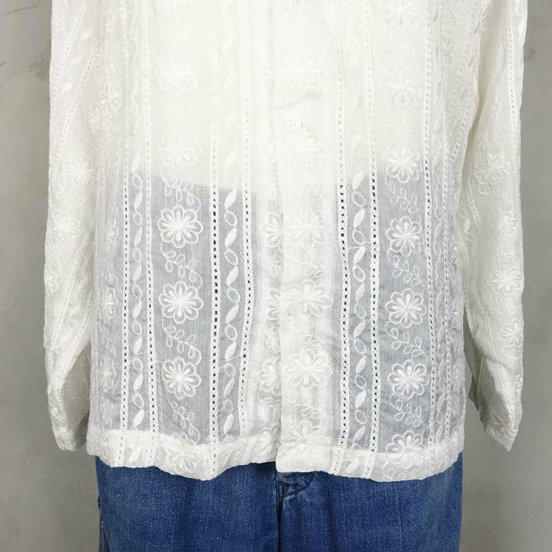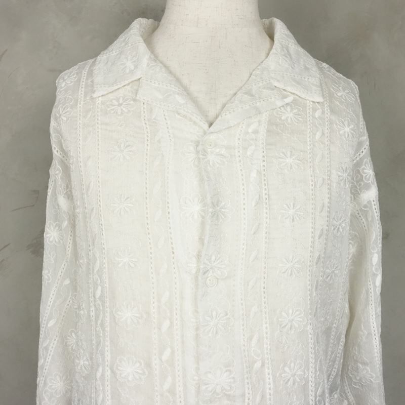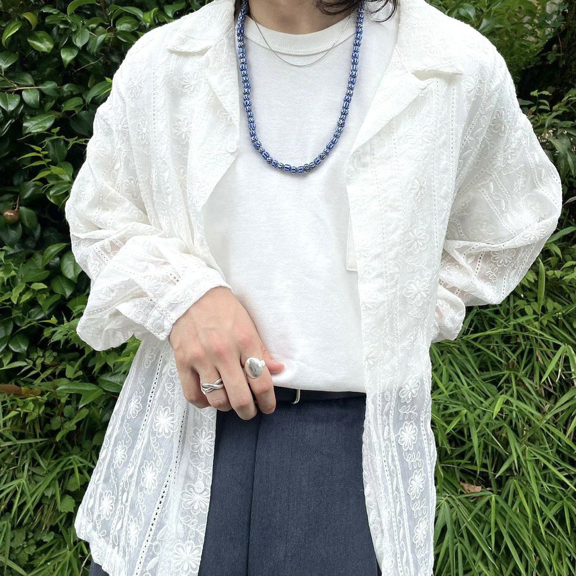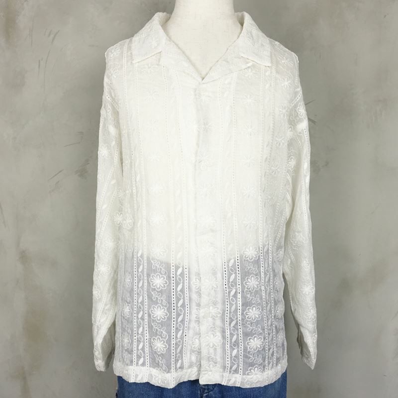 他の画像を見る Fafatt ファファット レース シースルー 長袖シャツ ホワイト 販売価格 ¥ 7,480 税込 在庫切れ 縦に柄が入った総レースの開襟シャツです。USEDではほとんど見られないメンズサイズのため、メンズが綺麗めに着るのはもちろん、レディースが肩を落としてゆったりめに着ることが出来るサイズ感となっております。袖口はバンドカフスとなっており極力生地のかさなりを減らして目立たないようにしてあるため、長袖のアイテムのレイヤードも綺麗な見た目を保つことが出来ます。夏場はもちろん秋口にロンTeeと合わせたりアウターの下にアクセントとして入れたりと幅広くお楽しみ頂けると思います。別で黒色もご用意がございますのでお好みでお選び頂く事ができます。また、白と黒で表情や合わせ方が違ってくるため、2色お持ち頂いてもそれぞれの役割で活用できるおすすめのアイテムです。 詳細を見る お気に入りに登録する