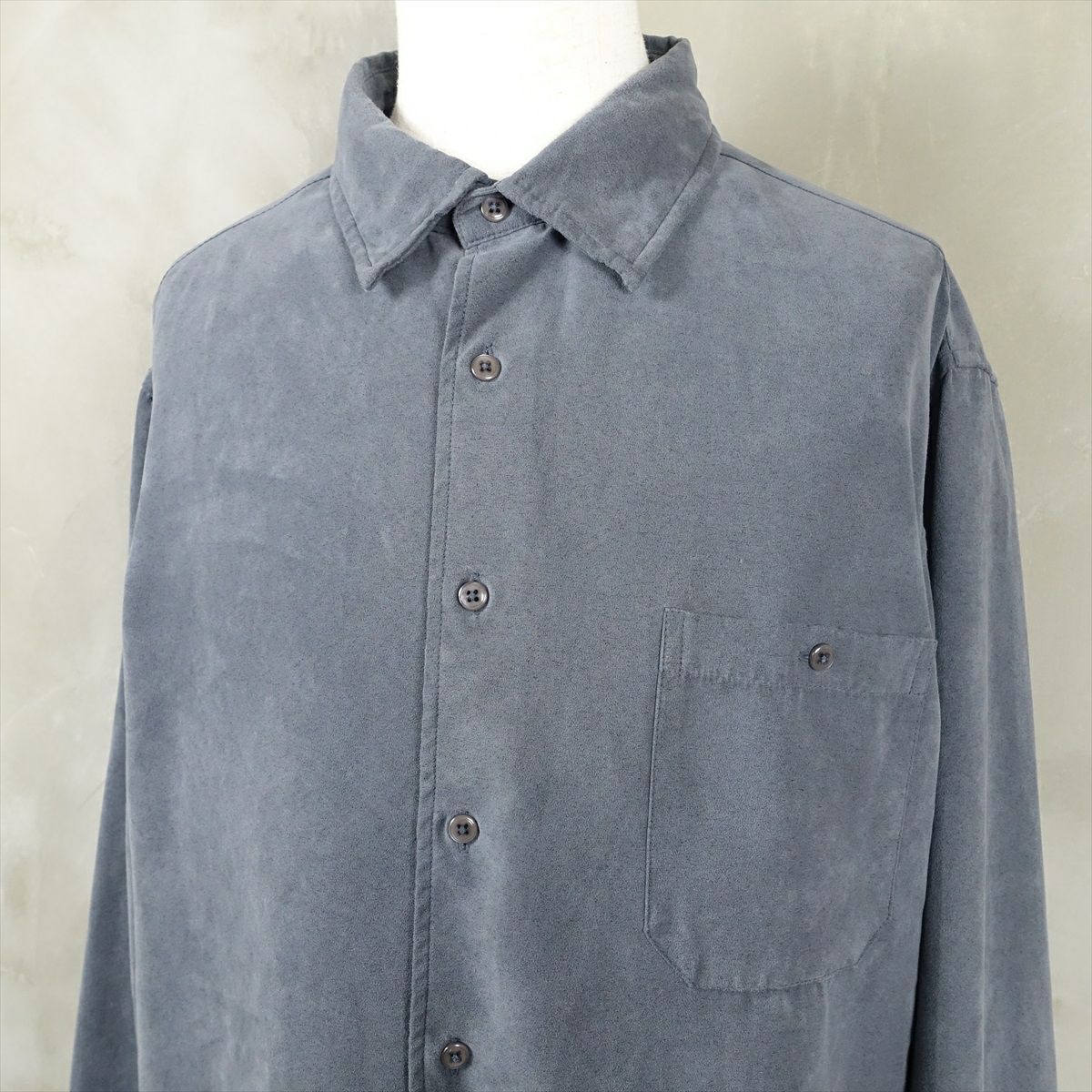 古着 UNTIED くすみブルー フェイクスエードシャツ