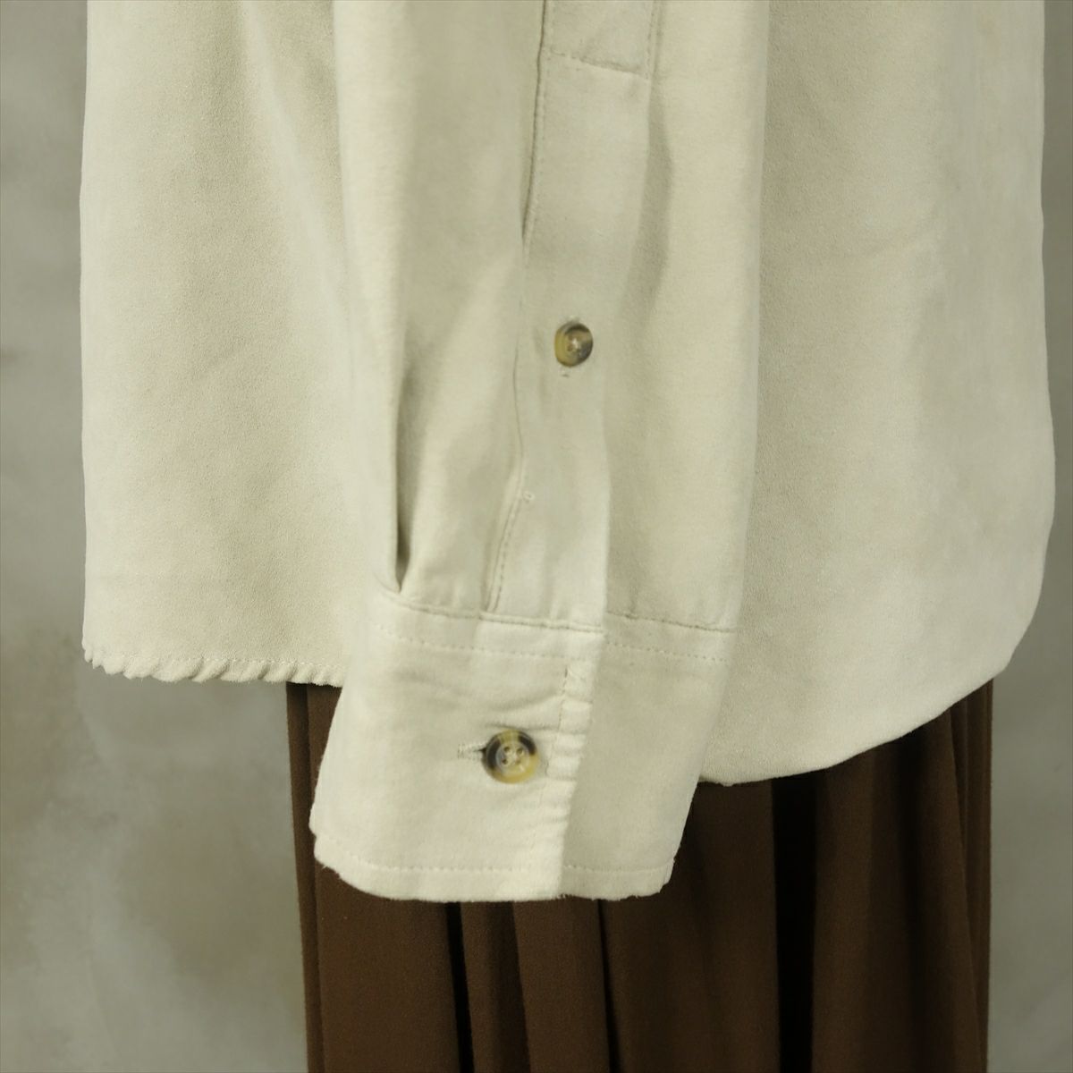 古着 フェイクスエード ホワイト 長袖シャツ