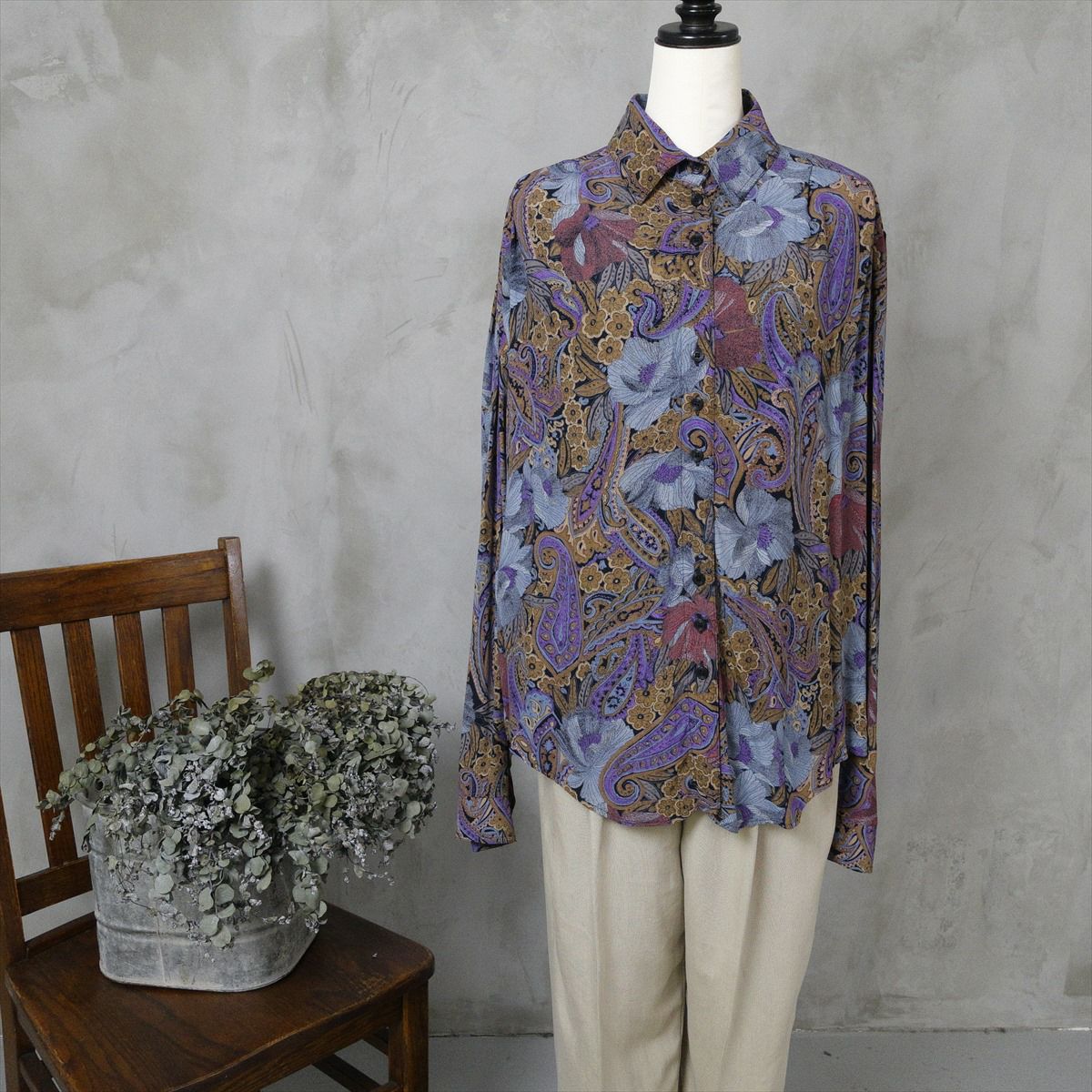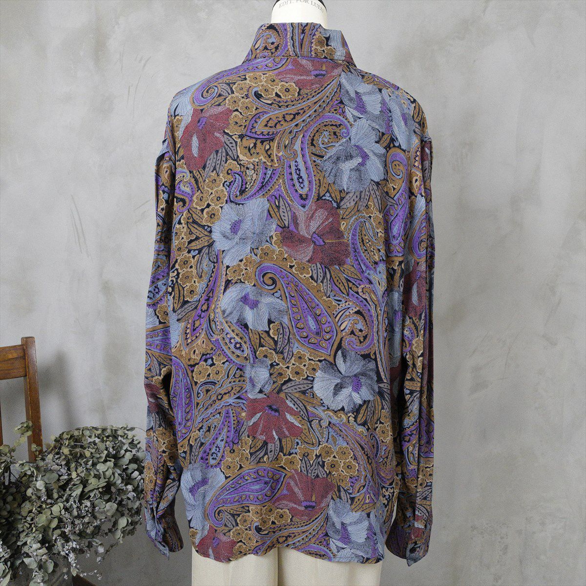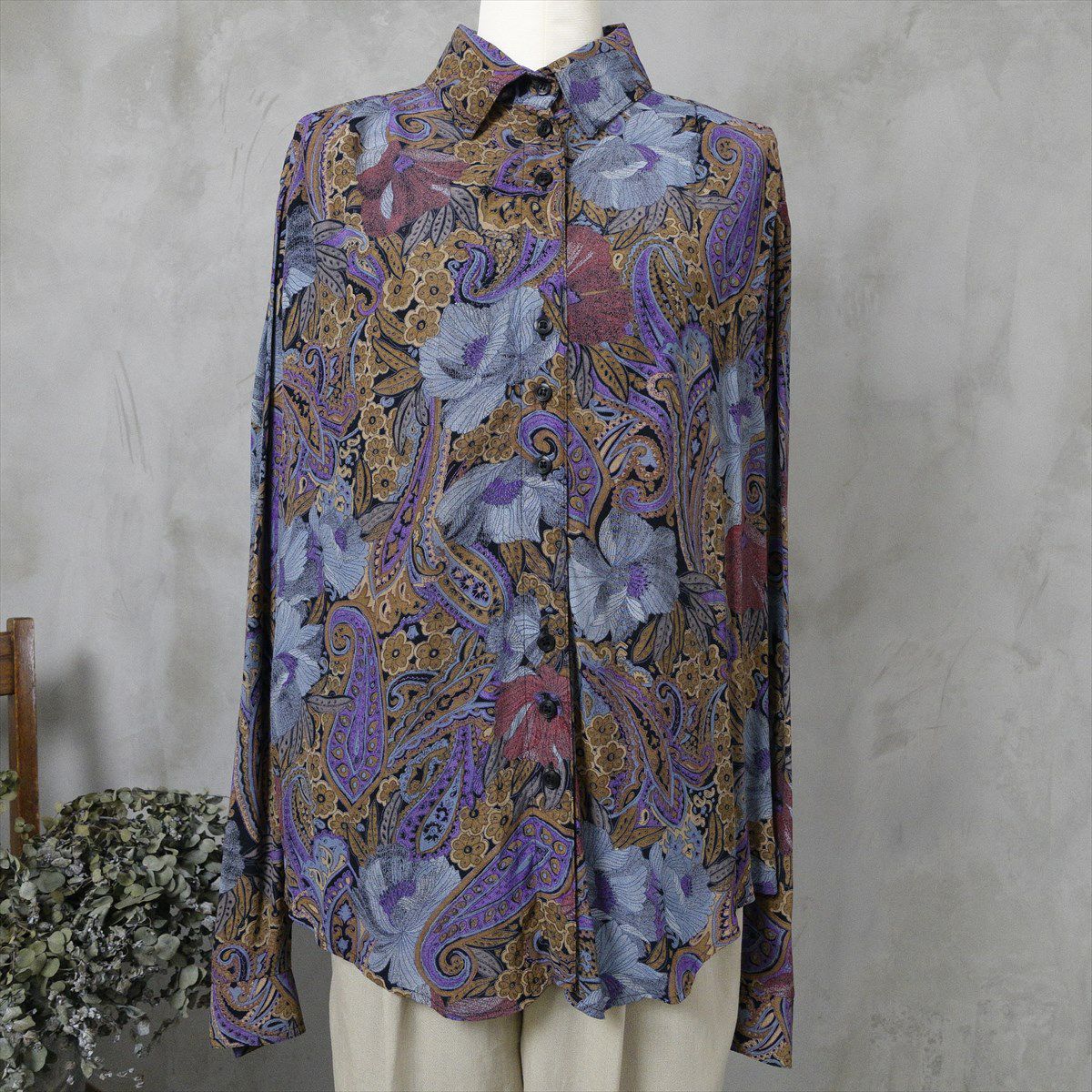 古着 長袖シャツ ペイズリー 花柄 ダークトーン