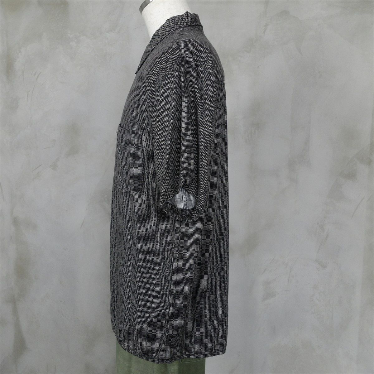 古着 半袖シャツ シルク 総柄 ダークトーン