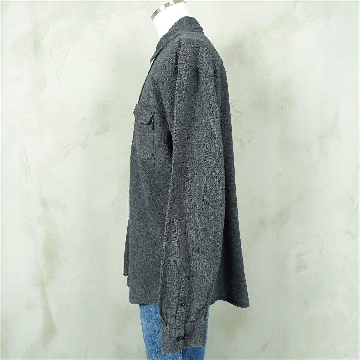 古着 シャンブレー風 無地 長袖シャツ