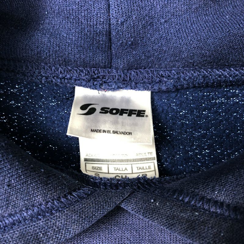 古着 USA製 SOFFE NAVYロゴ パーカー