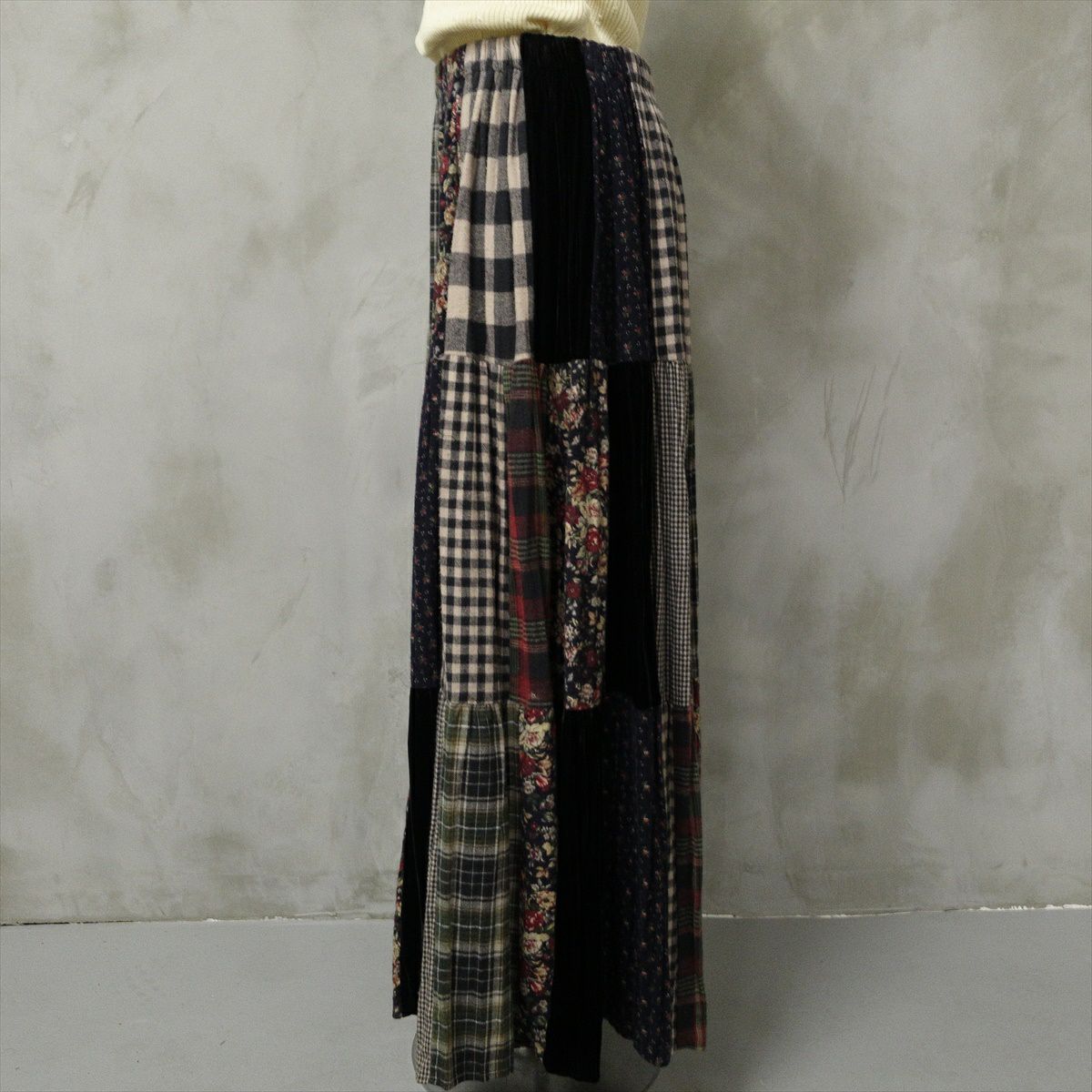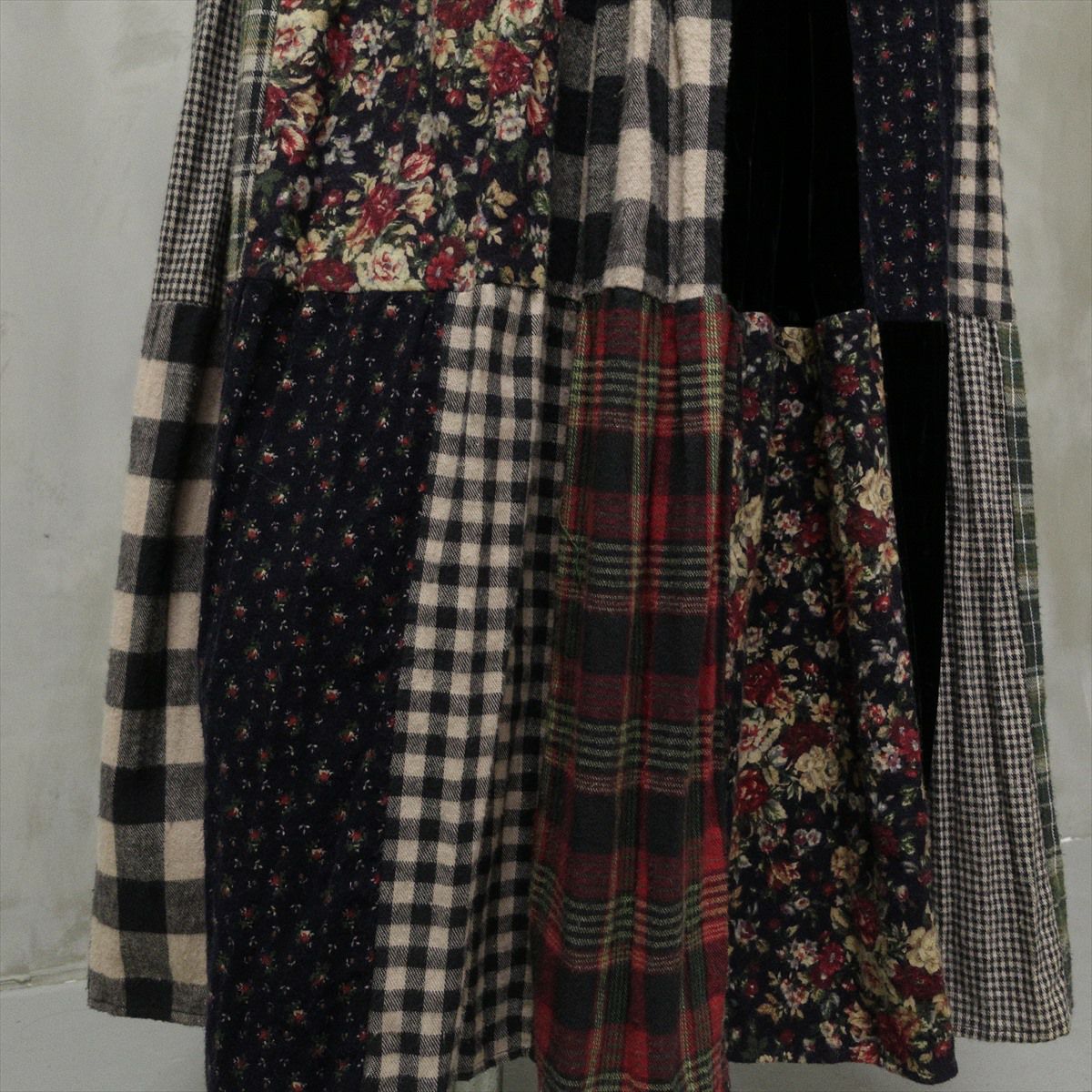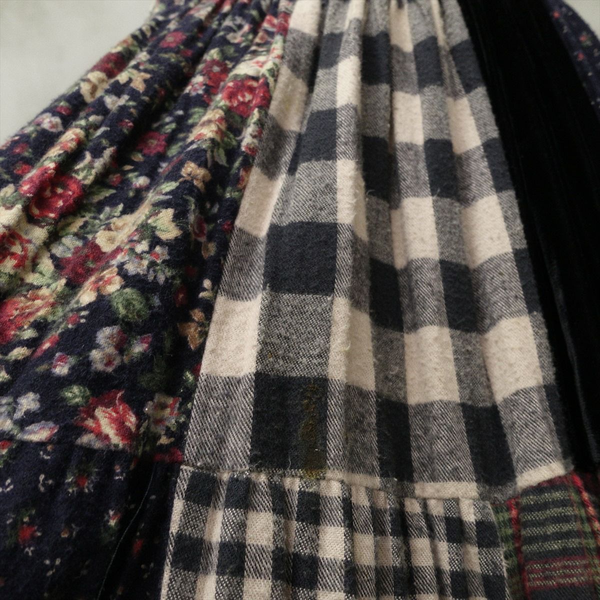 古着 USA製 Lucia Lukken パッチワークスカート チェック 花柄