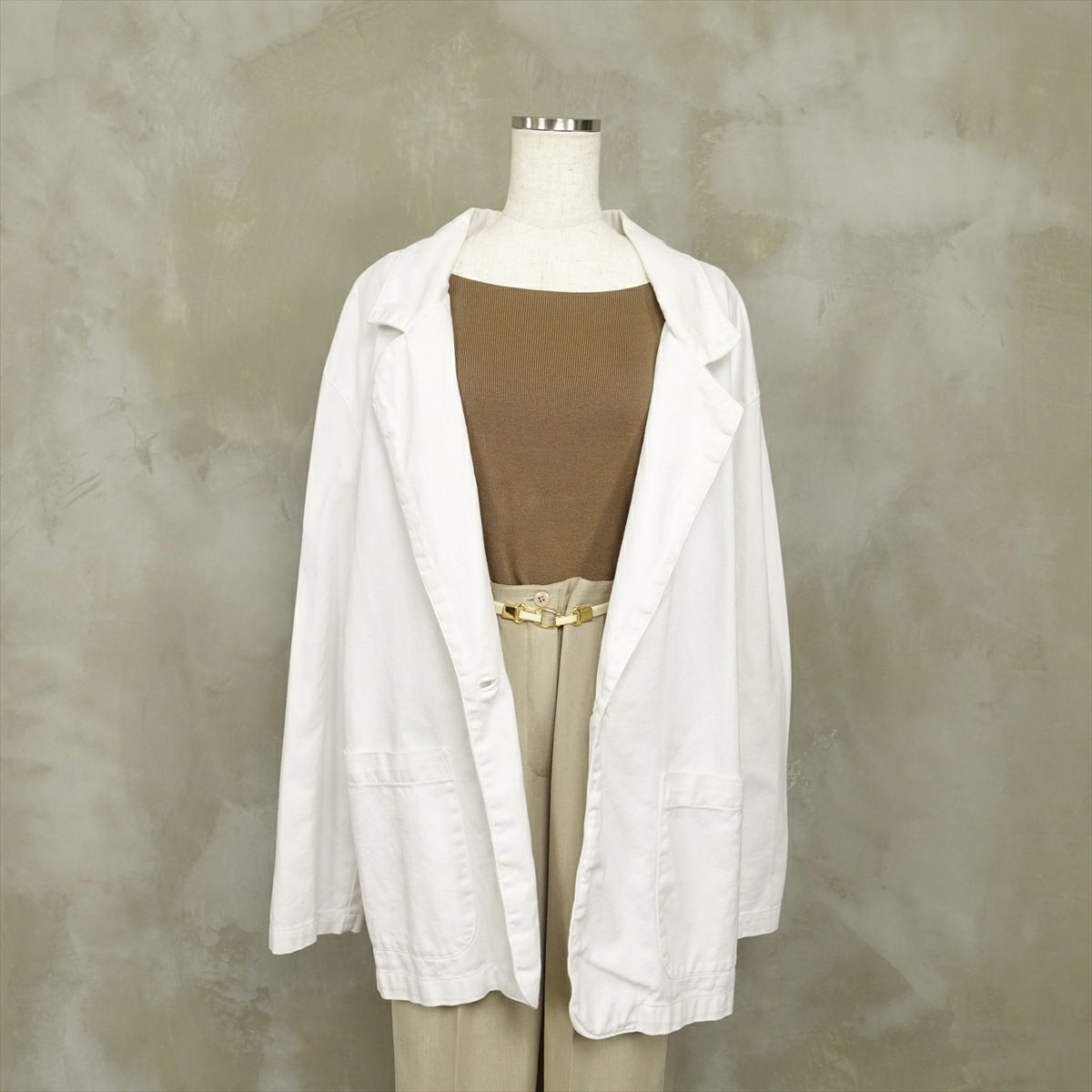 他の画像を見る レザーテーラードジャケット ブラウン 販売価格 ¥ 11,880 税込 フェイクレザーで出来たテーラードジャケットです。フェイクレザーの中でも柔らかい生地を使用している為、着心地が良いです。少し丈が長めのシルエットなので、スタイル良く見せてくれます。古着にはない、肩が張らないデザインなのも特徴です。パンツともスカートとも相性が良く、使い回しのできるアイテムです。277-11,277-21とセットアップでも着て頂けます。 カートに入れる お気に入りに登録する